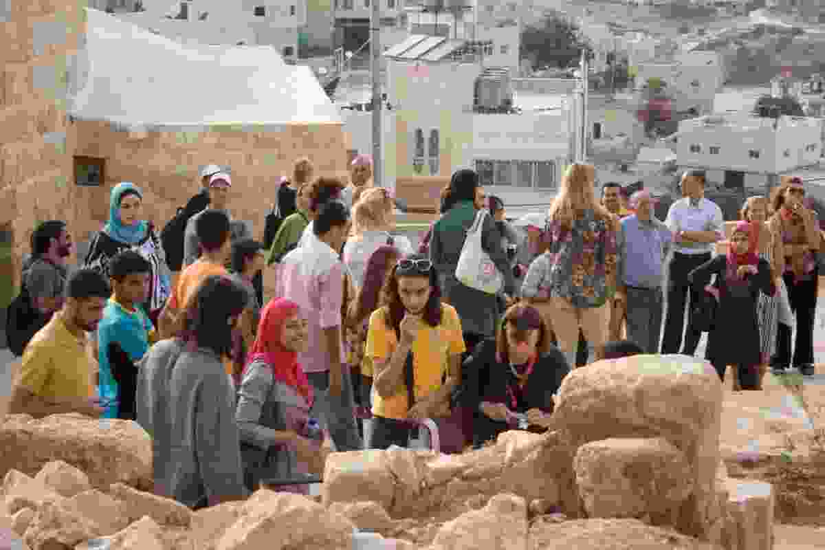 In this iteration of the biennial, the tours of villages centered on Riwaq’s conservation projects. A sense of the urgency of Riwaq’s operation was especially manifest during a trip to the town of Sabastiya, with its Roman ruins and presumed tomb of John the Baptist. Asphalt was recently laid down atop the Roman road there, and the sides of the bus I was on nearly grazed what columns remained standing on either side. Sabastiya is one of a number of towns under a protection plan put in place by Riwaq. The NGO is working, in the absence of a national policy, for the preservation of cultural and national heritage, and is undertaking efforts to establish the necessary constitutional and legal framework for that.