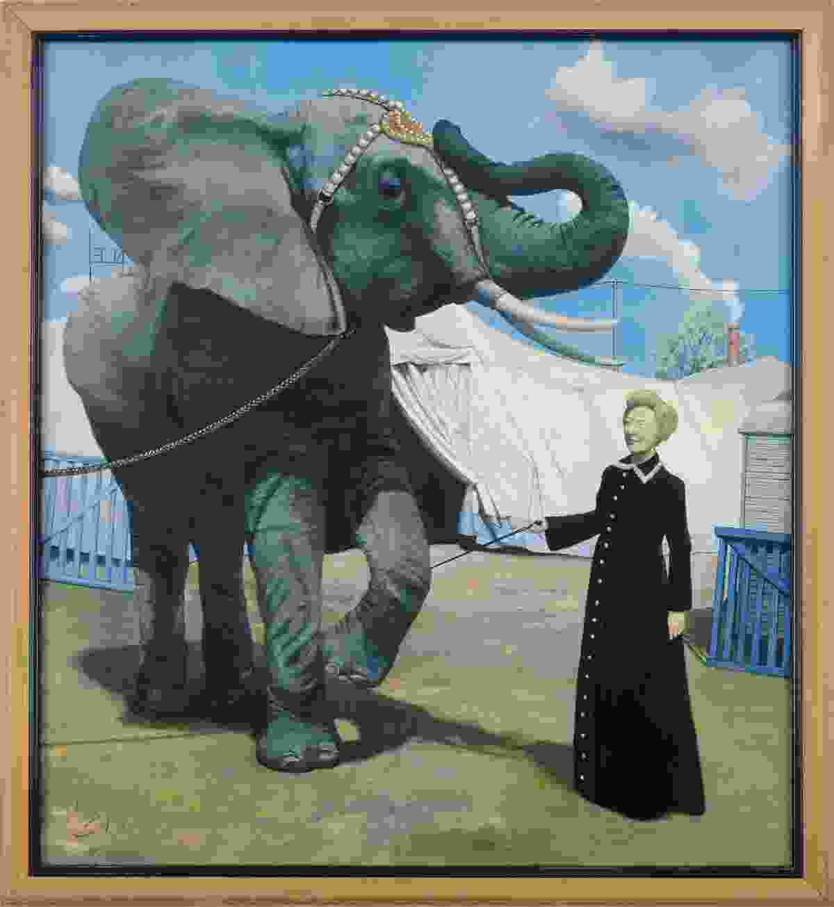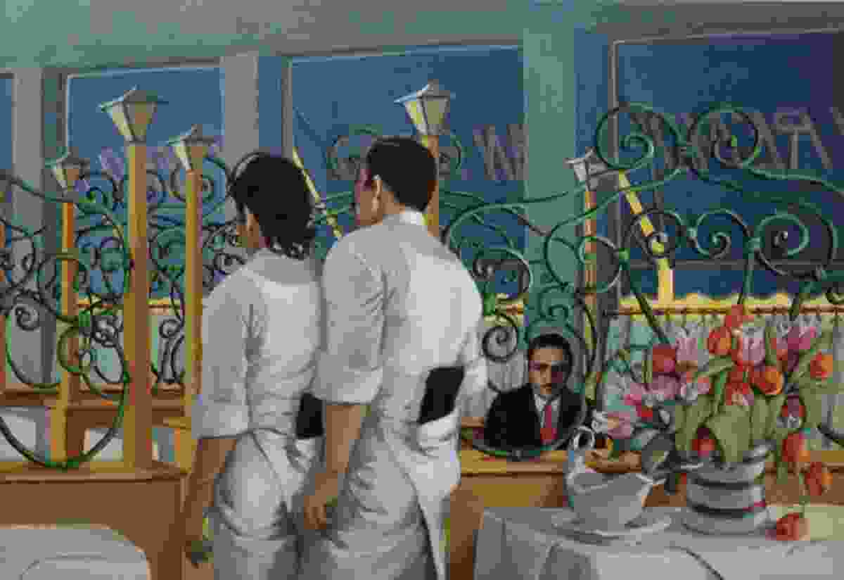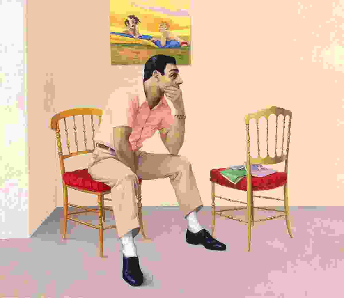 I spent my long and blissful childhood mostly undisturbed as a drag-princess (depicted in the painting Mimar Yücel). The court etiquette of my princessdom included regular visits to the workers’ wagon in full regalia. They always welcomed me with the utmost reverence, seated me tenderly amongst them, and fed me like a bird. Their departure left me devastated; yet in the end it ignited a longing so forceful that nothing could hold me back on my way to rejoin them. (See also the paintings Sunday Afternoon and We Must Believe in Spring.)