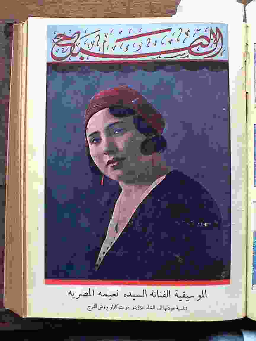 Before long, al-Misriyya had made a name for herself with her singular voice, working alongside noted composers of her time, from Zakariya Ahmed and Mohammed el-Qasabgy to Sayyid Darwish. She performed in theaters and music halls from Beirut to Aleppo, Jaffa, and Baghdad. In addition to opening and single-handedly managing el-Hambra, she also performed in the Cairo district of Rod el-Farrag, at the music hall Alf Leyla wa Leyla (One Thousand and One Nights). A 1926 article in one of Egypt’s premier cultural and political magazines, Ruz el-Yusuf, proclaimed al-Misriyya one of the “most famous female singers” of her time. Listed along with Fatheyya Ahmad, Munira el-Mahdiyya, Tawhida, and the rising star named Umm Kulthumm, she was in good company. Her brand of music, referred to as taqtuqa, was not far removed from the pop of today — in effect a popular music that was accessible to all. By 1932, al-Misriyya’s voice was broadcast on the newly inaugurated Egyptian national radio. Some showered her with the title “queen of the phonograph” (maliket el-istiwanat).