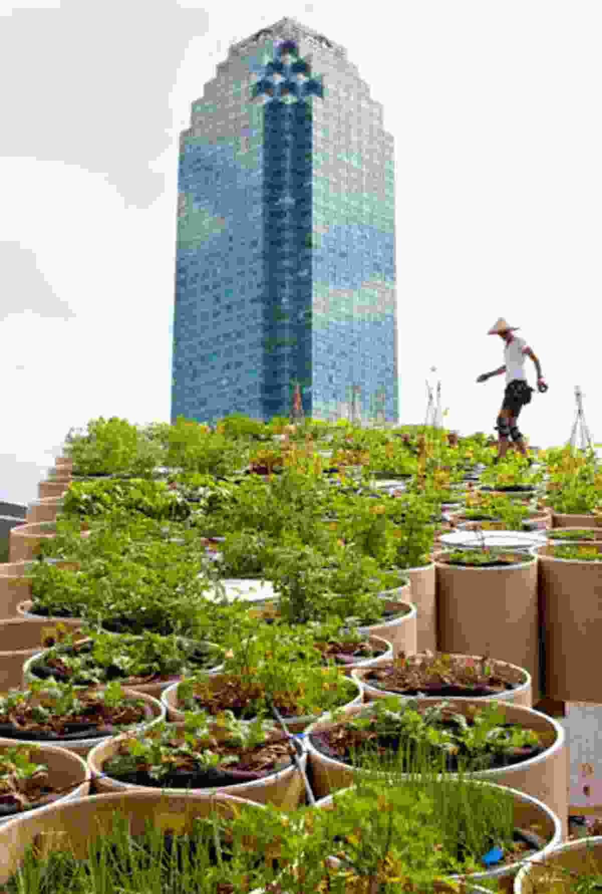 In American cities there has been less interest in large-scale urban agriculture projects. Until recently, that is. But the surge of concern about climate change, the dramatic escalation of oil prices, and the ascendency of various food movements have helped pave the way, and Dr Dickson Despommier, a microbiologist from Columbia University, has emerged as the go-to guru of vertical farming in America. He envisions skyscrapers that would plug into city blocks and sustain year- round agriculture using hydroponics, providing food for as many as 50,000 people. Despite the fact that none of the designs based on his proposals have come anywhere near to being realized, he’s cut a swath through the American media, showing up in popular science magazines, the New York Times, environmental blogs, and even on the Colbert Report.