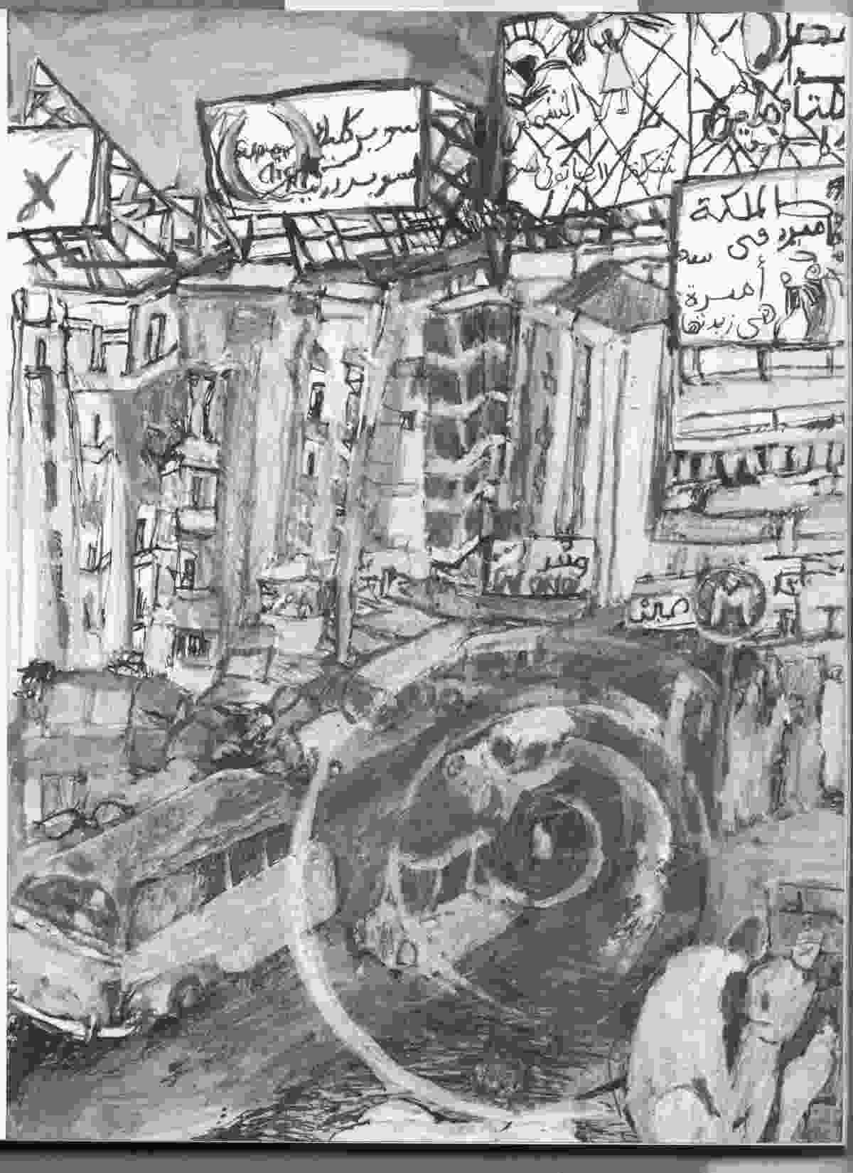 RS: Right, a contrast. And of course, this is very alive in your art. How do you view your drawings and paintings in relation to the life around you that you live and see in Cairo?