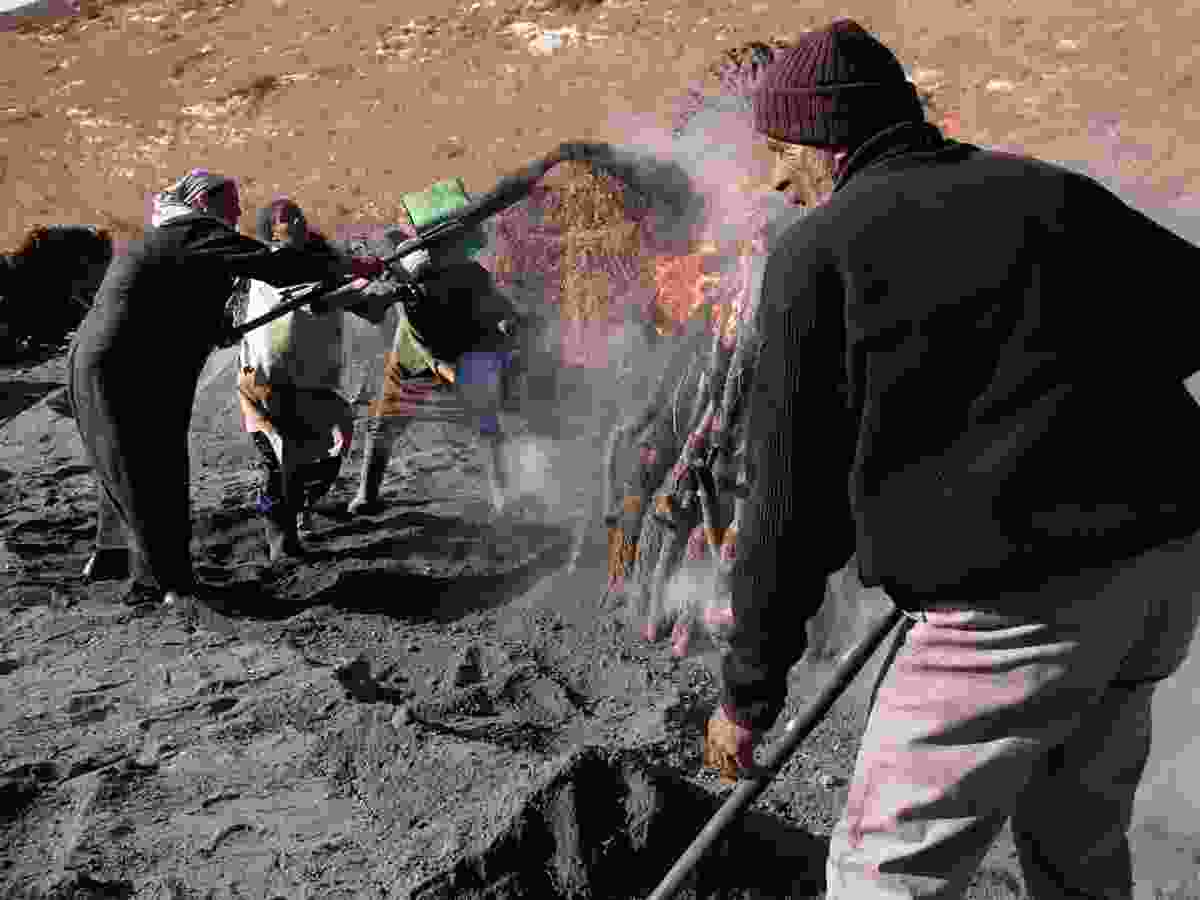 Set in Abu-Wael’s hometown of Um Al-Fahem (which means Mother of Charcoal in Arabic), the second largest Palestinian town within Israel’s pre-1967 borders, Atash focuses on a family cast adrift in a deserted outpost. Abu Shukri sells charcoal for a living, his wife, their son, and two daughters compelled endlessly to burn stolen wood. Obsessed with water he decides to build a pipeline directly to their house, despite protestations from his family. On the importance of water in the film, Abu-Wael commented, “Water is a power in our region. Whoever controls the water has the power.”