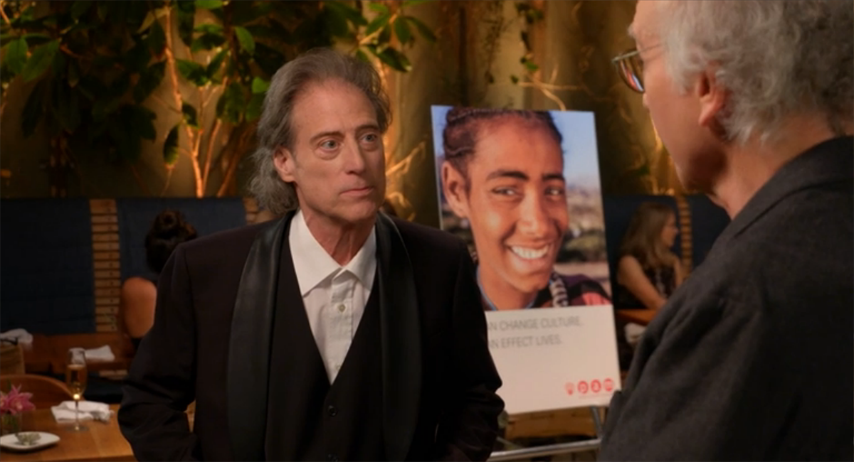 Contrast these bland contretemps with a signature moment from Curb’s very first season, in which Richard and Larry are squabbling down by the water in what appears to be Santa Monica. Their argument is interrupted when Richard recognizes a friendly face jogging by and stops to introduce Larry to the man, who is black.