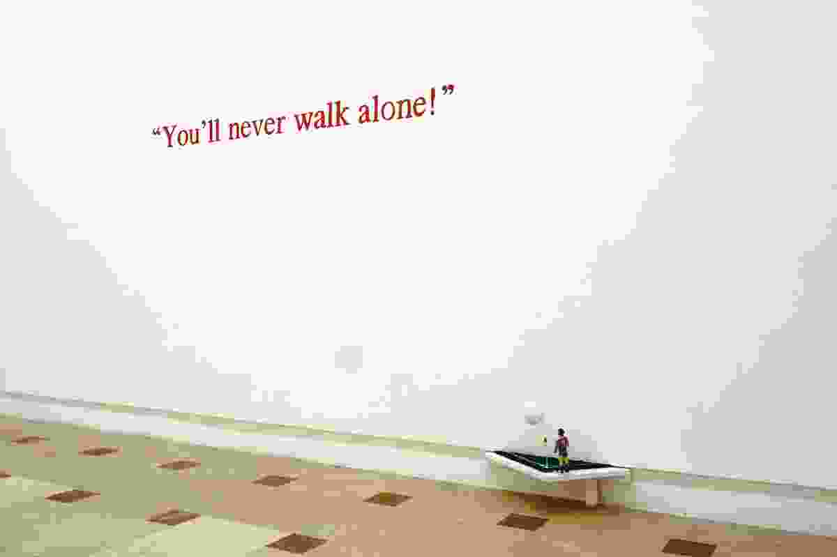 In Kantürk’s recent works, psychological effects and theatricality open his subjects to the dimension of the social. His Masters Voice, a room installation, reproduces the kitschy lobby of Istanbul’s Londra Hotel, a place mostly frequented by artists, musicians and filmmakers. The work includes old wallpaper, a dusty desk lamp and an aged turntable placed on a commode playing Turkish songs from the 50s, and clay figurines of a dog and a gramophone rotate on the record and recall the famous Victrola logo.