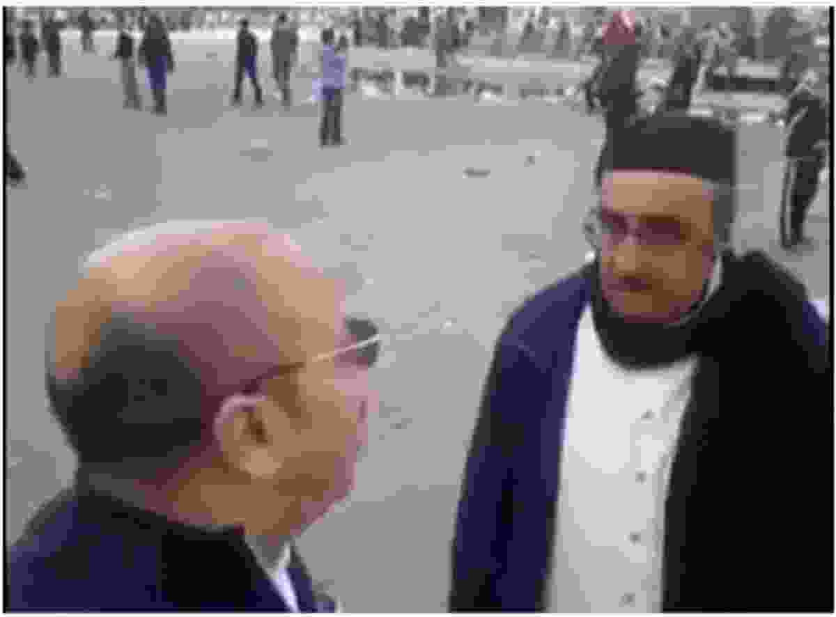 A time-traveler in Farouk-era get-up and cane wanders confused through the emptying square. “What’s going on!?” he calls out to an amateur cameraman. “Is this a lover’s quarrel?”