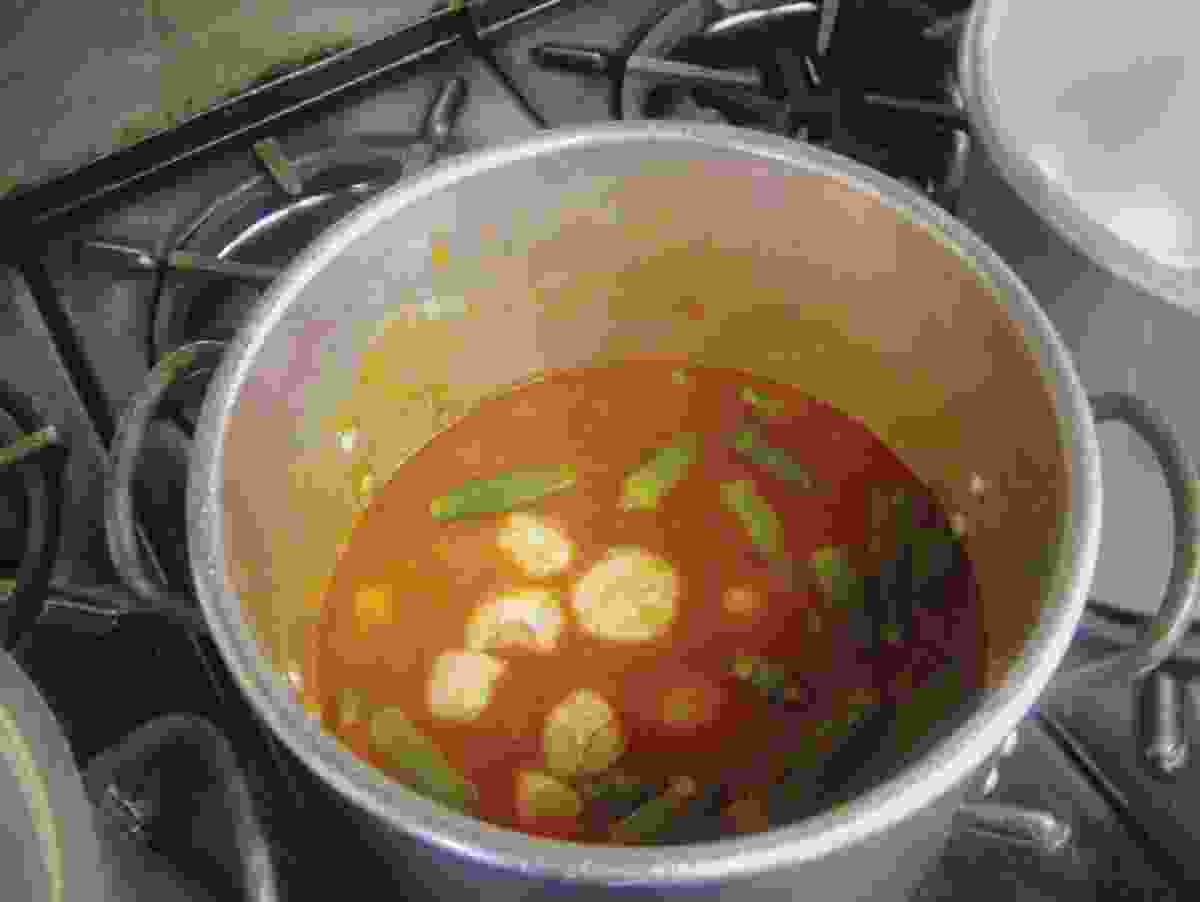 In a large, deep pot, sauté the onion in the olive oil, adding ½ teaspoon of pepper and ¼ teaspoon of tumeric. Next, add the crushed tomatoes. Fill the two empty cans of crushed tomato with water and add (this gets all of the remaining tomato out of the can in the process). Bring to a boil and let cook for 15 minutes. Reduce heat, simmer for about 7 minutes, and then add the okra (fresh or frozen) along with a teaspoon of salt and the remaining lemon juice. Introduce the kubba into the simmering mixture by dropping them in carefully, two at a time. Distribute evenly around the pot. Allow it to cook for 15 minutes, then add the sugar and let simmer for 10 more minutes. Serve with plain rice.