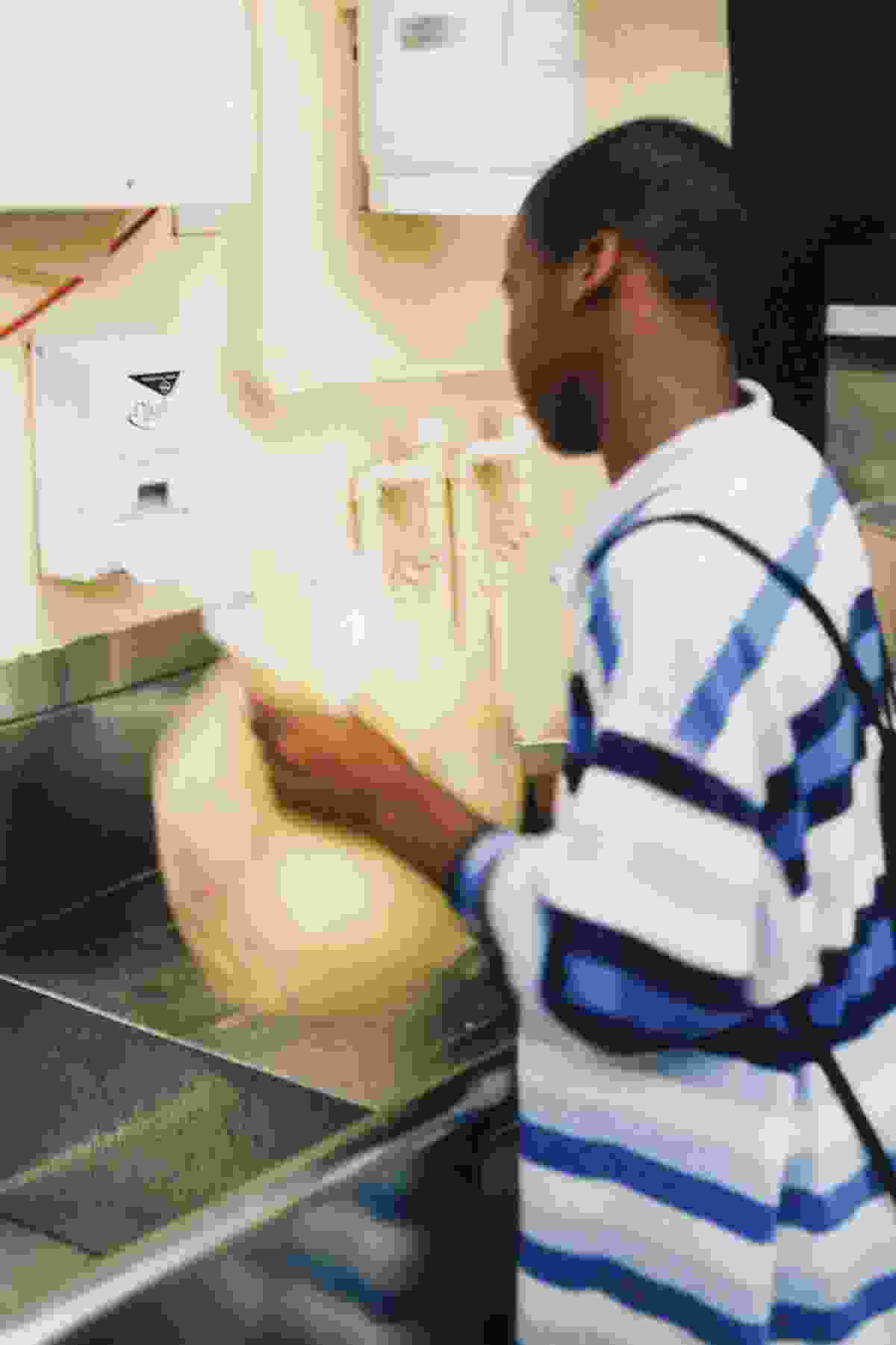 After eight weekly sessions learning how to cook Iraqi food, the students at the Hudson Guild Community Center proposed they teach me something about their families’ recipes since they now knew so much about mine. One of the students, Hyasheem, asked, “Do Iraqis make Southern fried chicken?” I answered that no, to my knowledge there was nothing like it in Iraqi cuisine. So why not, we wondered, invent it?