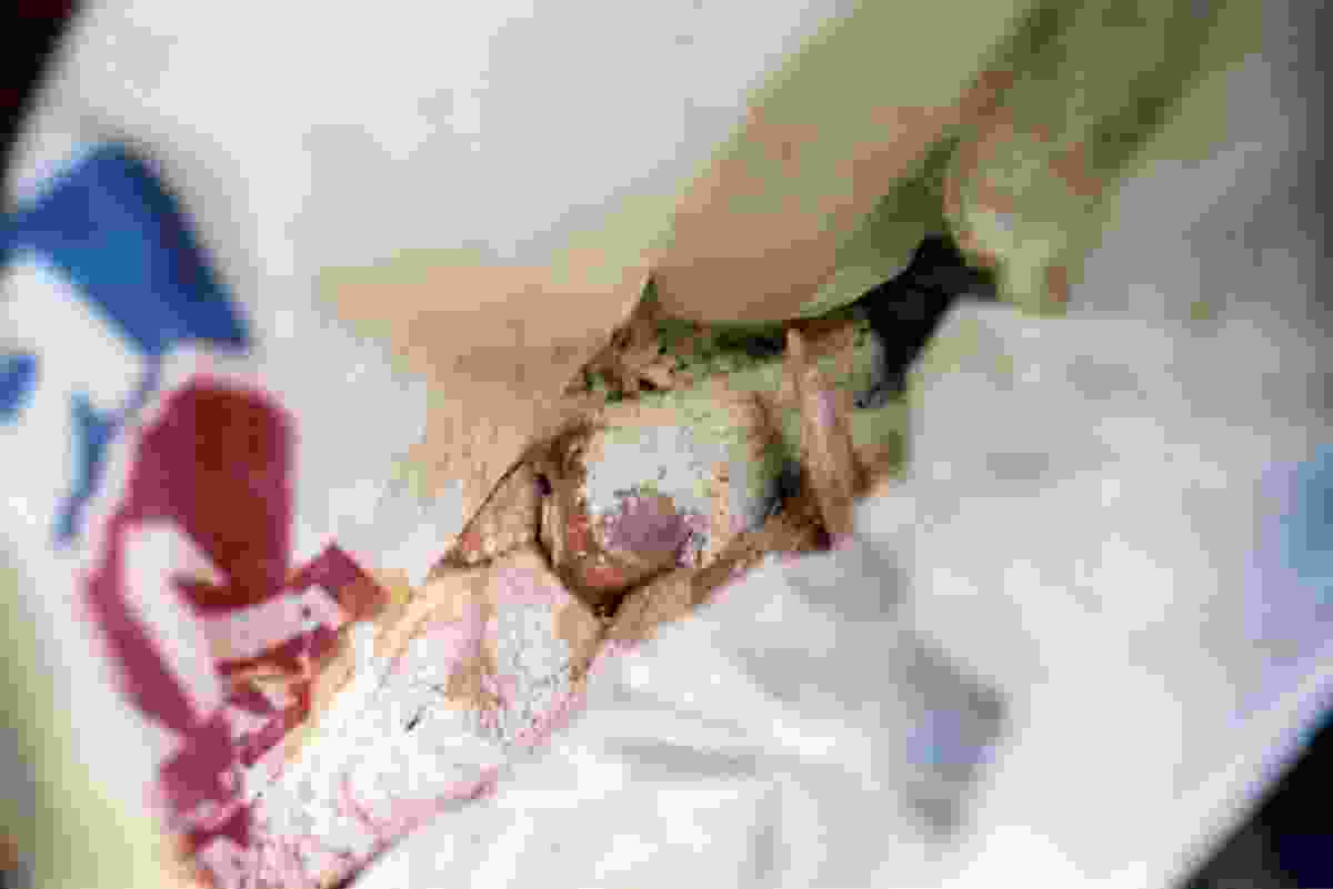 Next, mix 2 cups of natural rice flour with ½ pound of the meat to create the dough that forms the outer shell of the dumpling. Water should be added gradually to keep the dough smooth. Keep a saucer of water nearby to keep your palms wet. Break off small pieces of the dough and roll them into spheres smaller than a golf ball.