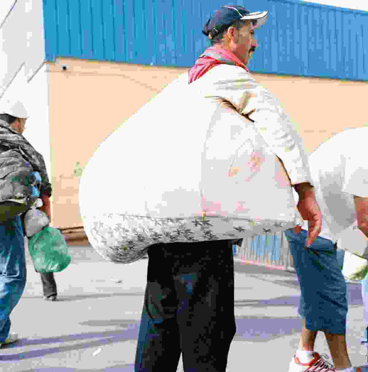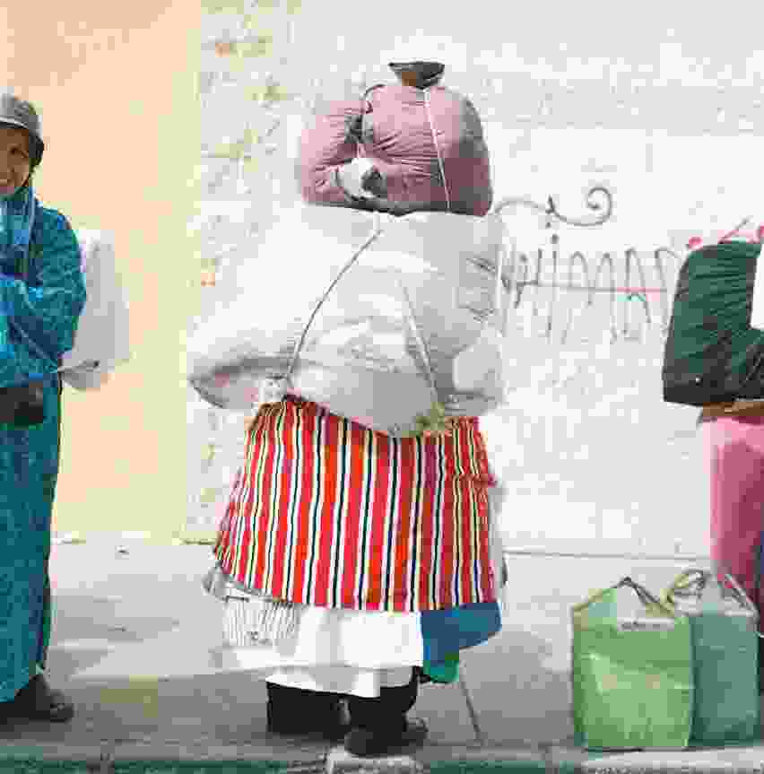 Crossdressing is a project by Simona Schneider on merchandise and border crossing. The free-trade zone in Ceuta, the autonomous Spanish city on the northern tip of North Africa, sees goods from all over the world, from booze, cloth, old shoes, dead bolts, and flour to notebooks and toilet paper as they make their way into Morocco. Ordinary citizens who are otherwise unemployed must placate two different masters, Spanish and Moroccan, in order to move their wares. One guideline set by customs says that smugglers should not flaunt the size or content of their packages; they must be as discrete as possible about their compromising forms.