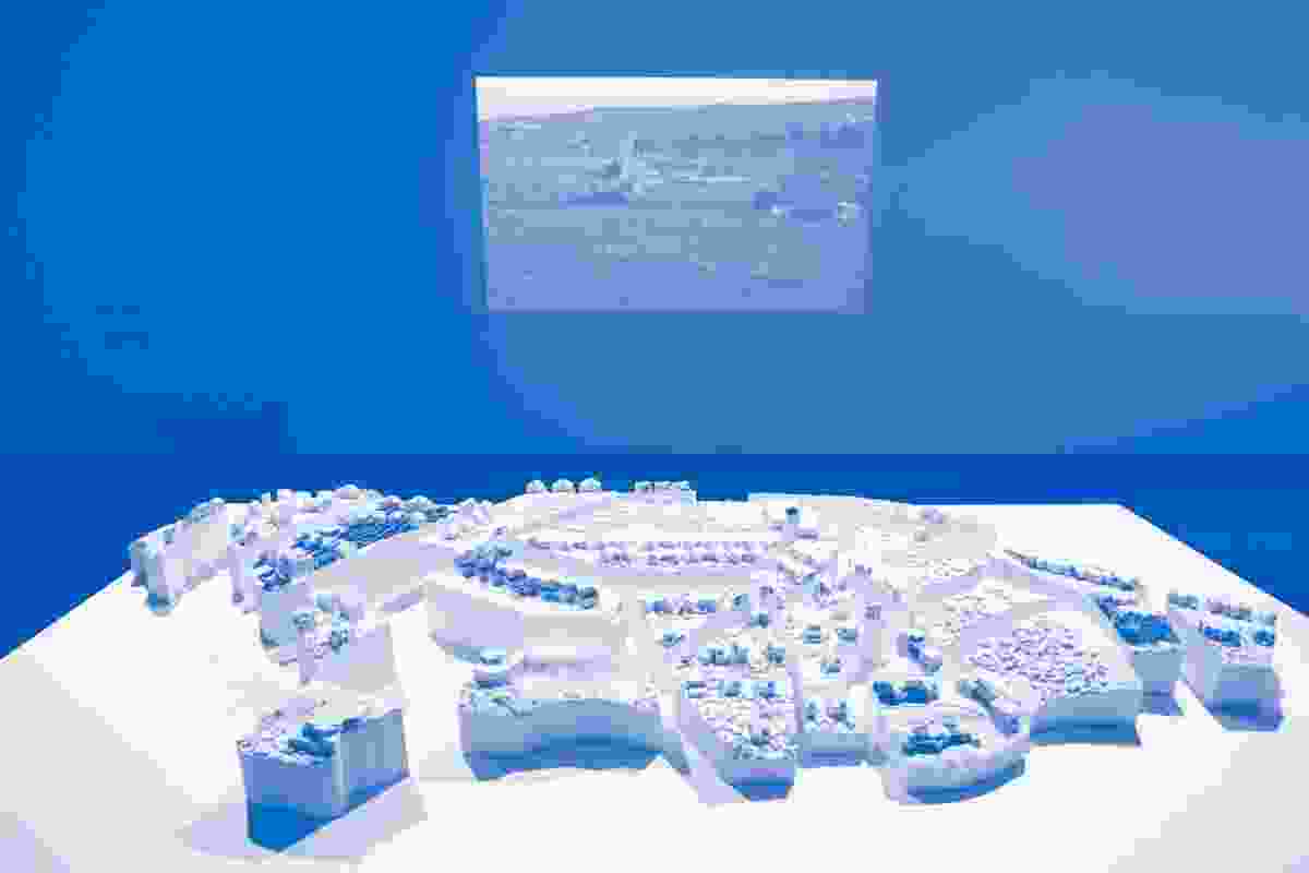 In How to Inhabit Your Enemy’s House, for example, the collective confronts the deserted Israeli settlements left behind in Gaza and the West Bank from 2005 onward, model suburbs turned post-apocalyptic when they were forcibly emptied out on short notice. Their main proposition is visualized in the literal superimposition of pre-settlement landownership maps over the existing suburban fabric, dual projections printed in a row of glossy research publications (with white gloves to turn white pages), and accompanied by two short videos (one 3-D) and an architectural model. The premise is straightforward: voided domestic spaces might host new public services, including hospitals and schools, in an area where these were previously unable to develop. The literal act of superimposition from above, the discussion of “returning public property to the public,” and a palpable phobia of suburban models in general, seemed perplexingly basic, even dogmatic, in the wake of Weizman’s eloquent explanation of the far-from-basic circumstances in which DAAR functions. Is there something more to be gained by recalling the variegated histories of these structures themselves, established for an array of reasons — in some cases, with rabidly ideological intent, in others, because of a literal lack of space in the region? What remains disappointingly unaltered in How to Inhabit Your Enemy’s House is a vision of these sites as an abstracted territory from which we remain at a comfortable remove — something that the other two portions of the exhibit more successfully move beyond.
