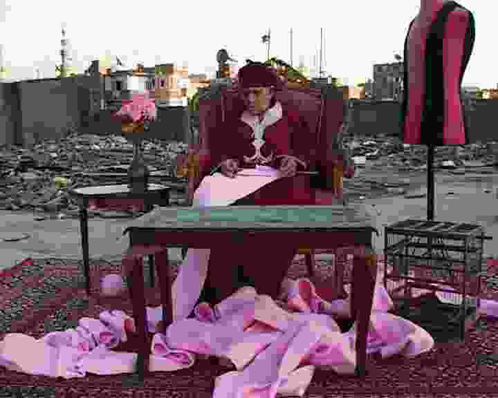 In conjunction with the video projection, Elkoussy presents a series of photographs of scenes that mark the boundary between the urban and the nonurban (read: desert). Drawing upon the landscape tradition — the photographer bathes the images in a warm, luminous light — these oddly ambiguous spaces reveal the binaries that characterize the city, the simultaneity of significance/insignificance, visibility, and utter obscurity. The paradigm shift in representation parallels the alternative reality of those characters that live amidst the margins. This is their reality, says the artist. As ever, Elkoussy questions the bounds of what constitutes the photogenic, questioning the canon of that which is worthy of representation. Peripheral is ostensibly an extension of her (re)construction series, a photographic project in which protagonists are caught at points that are both banal and monumental, real and fictional. Either way, the state of flux abounds.
