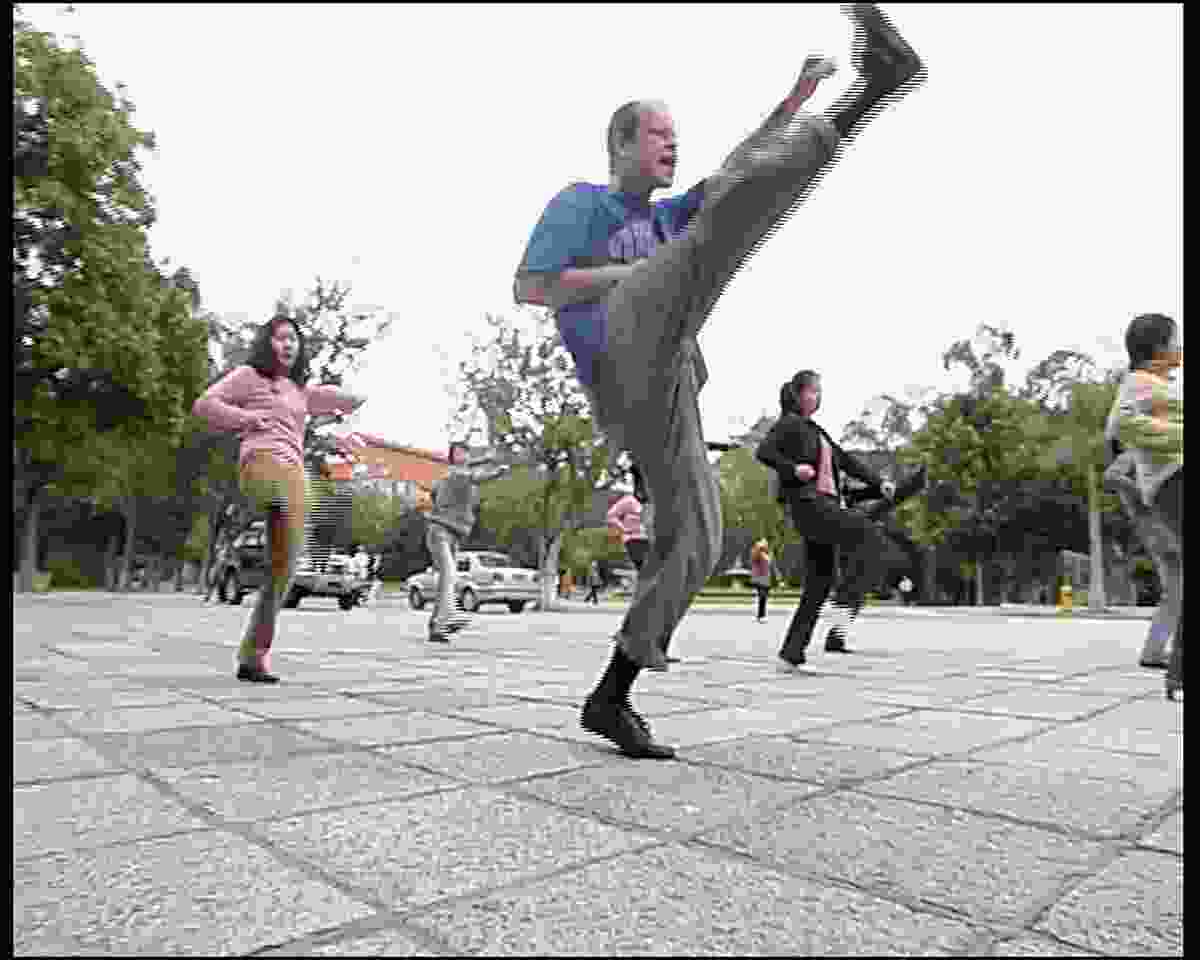 Some of these works are rather weak in comparison to the questions Zolghadr poses, falling into the trap of evoking pity for the “colonized,” loosely defined. In this way, they play on the traditional trope of evoking pity for “victims” — endemic to Western art since its beginnings (think of the ubiquity of images of martyrs, the Crucifixion itself). What then of a reversal of the classic colonial relationship? Solmaz Shahbazi, for example, films the Fête de Genève, a seminal event for the local tourist industry for the purpose of entertaining moneyed visitors (primarily from the Middle East). Here, the Swiss present themselves as an ethnic minority, complete with strange cultural habits. Wong Hoy Cheong, for his part, recreates a typical Austrian living room with the television displaying a “documentary” about the colonization of Austria by the Malawian Empire. In these works the non-Western subject is not the victim, but rather the smart and strong counterpart. The same applies for a second piece by Jens Haning, who launches a poster campaign exhibiting an Arabic joke (written in Arabic) installed in the center of Geneva — and even for the more ironic work of Natascha Sadr-Haghighian; the artist has constructed a website that invites artists to share pieces of their biography — the aim being to provide fictive biographies to artists that have to meet specific demands. But such strategies have their weak points, too: are these true alternatives to a so-called Western approach? Let us turn to a third, smaller group of works. In their film The Road to Tate Modern, Erkan Özgen and Sener Özmen stumble through the West Asian countryside, referencing Don Quixote throughout. Quixote, the epic sixteenth century figure who is central to Western culture to the present day, represented the reader’s failure in trying to emulate ideals of feudal chivalry as celebrated in medieval romances. In presenting their quest for the ideal of Western art as an enterprise analogous to Don Quixote’s, Özgen and Özmen attain a double aim. On the one hand, they simply fulfill the demand of the art market by delivering a piece of heroic failure. But it is exactly in doing so that they provide a starting point for a true and profound critique of the art system.