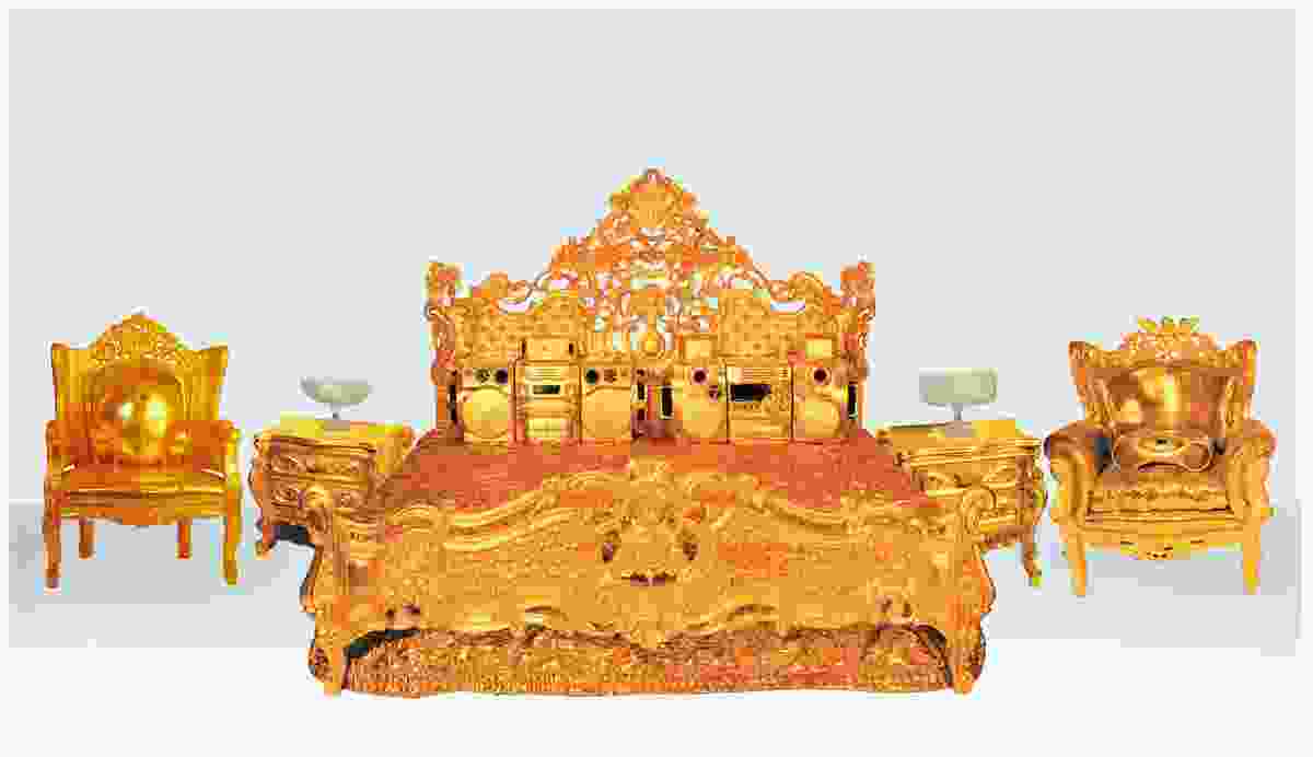 In the end, Moshiri will always be — for some people at least — the guy who made fluffy DayGlo birds out of sequins while the revolution came and went. And indeed, he is not not that. Art, after all, may be about illusion, and it may be a manufactured idea, as he himself puts it. It may also be, as Duchamp asserted, simply what the artist says it is. “You are what you eat,” Moshiri once told me, of his gilded furniture pieces. Celebrate him or shun him, he may remain the paradigmatic artist of the boom times.