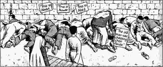 Months later, after the article he had been working on was published (with the part about the massacres excised), Sacco decided to return to Gaza and further investigate what had happened in 1956. The second incident caught his attention as he was doing research: Israeli soldiers had been searching for guerillas in Rafah and called for all men to gather to be screened; the soldiers for some reason panicked and began firing on residents, killing more than a hundred of them. This episode, too, had nearly disappeared, save for a couple of painfully judicious sentences in a United Nations report.