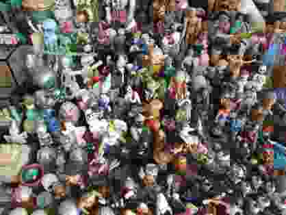 The objects that miss their target most are often the most irresistible. In my collection you’ll find a Minnie Mouse from India in regional dress; a Father Christmas with wings; a scorpion with a skull, for the Day of the Dead; an African Tin-Tin; and the entire Simpson family, sculpted from pistachio nuts. Freaks of culture. Surrounded by them, I feel like a tourist who has been given the wrong directions, but, not comprehending anyway, has still managed to end up in the right place