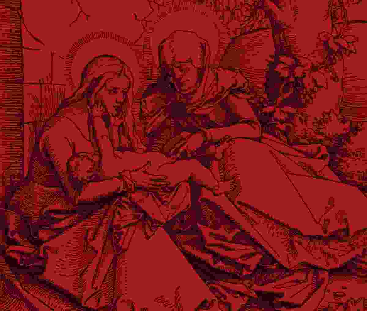 “The presentation centers on an ostensive act, a palpable proof — proving nothing less than what the Creed itself puts at the center: God’s descent into manhood. And because grandmother Anne guarantee’s Christ’s human lineage, it is she who is tasked with the proving. Her gesture is remarkable not only for its intamacy, but for its integration in a close-knit symbolic system. Observe that while the Child’s lower body concedes its humanity, the arms reach for the Virgin.”
