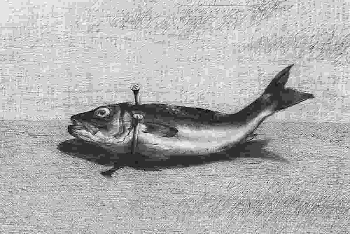 Youssef Abdelke has been practicing as a graphic artist since 1968, producing posters and book covers, and is known as a leading authority on the history of caricature in Syria and the Arab world. In the 1980s he began combining his illustrations with ascetic studies, often of fish, rendered in charcoal on canvas. He has since pared down his practice further, homing in on other natural phenomena — skulls, for example — as well as ever-more-minimal, mundane subjects, such as an empty box, bent nail, or can of sardines. This is the engraver and master draftsman’s first solo show at leading Syrian modern and contemporary gallery Ayyam.