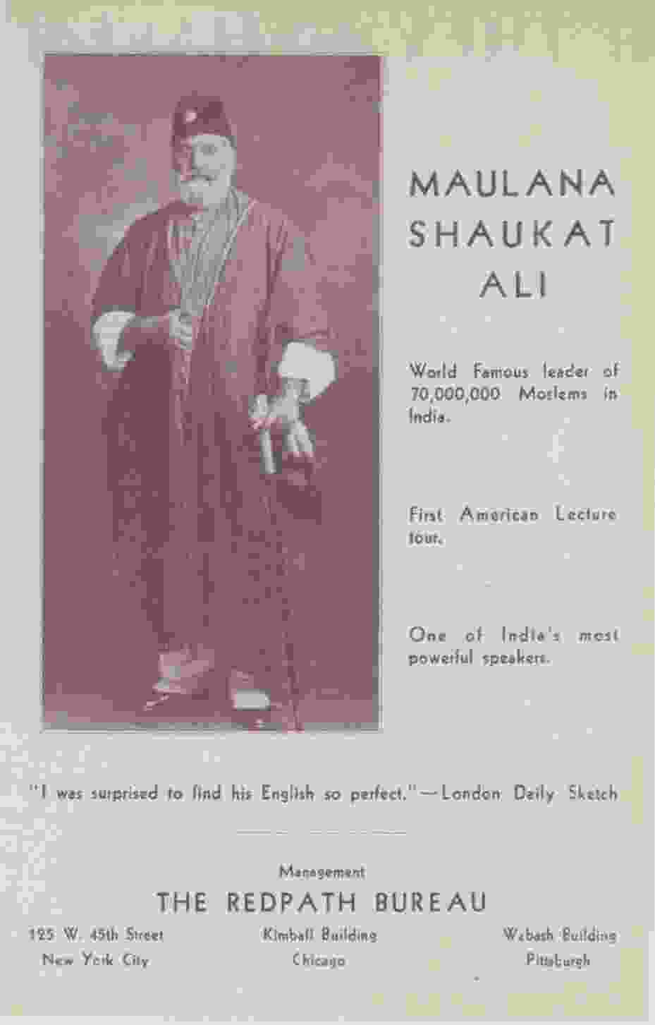 With this pamphlet, we come across something that might be a bona fide historical document. It is pointless to quibble that Maulana Shaukat Ali was not technically the head of seventy million Muslims at the time of his American tour, but even though he would die almost ten years before independence and partition, he was still a key player in his region’s politics and a close political ally of Muhammad Ali Jinnah. His tour reveals Chautauqua as a kind of prototype of a Sunday morning public affairs program, an ancestor of today’s protean news-entertainment complex.