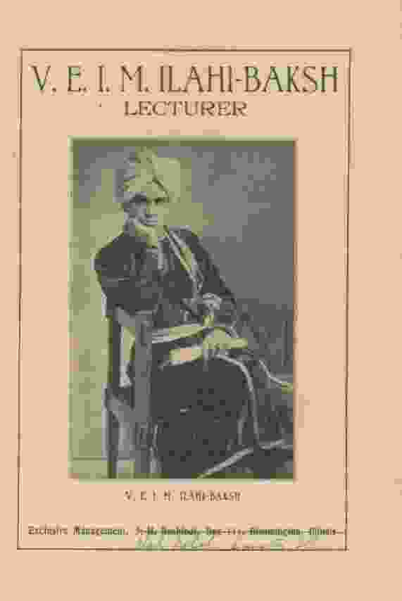 The cautionary lesson of V. E. I. M. Ilahi-Baksh’s pamphlet is that the lot of the exotic man of learning in the Americas may be marked by sudden reversals and betrayals. This is announced immediately on the cover page of Mr. Ilahi-Baksh’s pamphlet. The name of his manager, one J. H. Roshindi of Bloomington, Illinois, has been crossed out, replaced by what appears to Ilahi-Baksh’s own name, or that of someone bound to the lecturer by blood. Mr. Ilahi-Baksh has apparently ventured out on his own, but why? If there has been an offense, it is lost to history. Exigencies of cost or time have prevented the printing of new materials, and this particular specimen seems to have done double duty as a solicitation for work and an audience-facing advertisement for lectures. The recommendations of Chautauqua functionaries testifying to the quality of the lecturer’s services are marked in pen, and one imagines Mr. Ilahi-Baksh highlighting their praise just before pressing these pages into the hands of a booking agent or circuit manager. The pamphlet makes ample and regular mention of the speaker’s mastery of the English language, but one cannot help worrying about his prospects. If only a fool hires himself as a lawyer in a court of law, the performer who becomes his own manager is often on the express train to Palookaville. Producing and performing call for distinct skills and outlooks, and the exhausted, inward cast of IlahiBaksh’s eyes, the set of his mouth, suggest a man who will have a hard time keeping his professional personae and their associated demands distinct. This photo was clearly taken back before the manager’s erasure, and for all we know poor J. H. Roshindi simply fell to a Bloomington sidewalk one day, struck down by stroke. All the same, one imagines that even during the sitting, Ilahi-Baksh was nursing a bad feeling about his manager, an intuition that things would soon go awry.