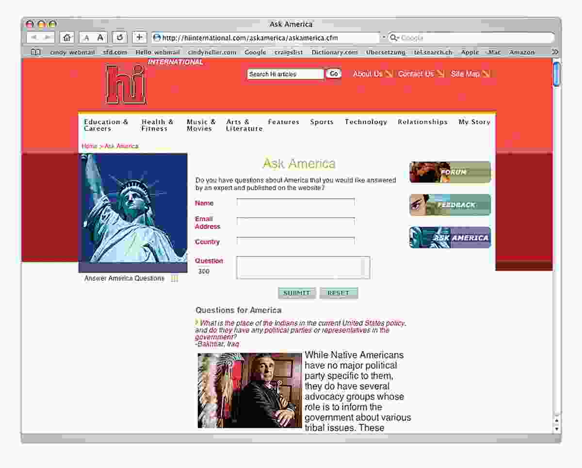 Hi!'s self-proclaimed mission: to “address issues of universal appeal to young adults — such as family, education, entertainment, technology and sports.” State Department spokesperson Christopher Ross has deemed its goal to “introduce the real face of America.”
