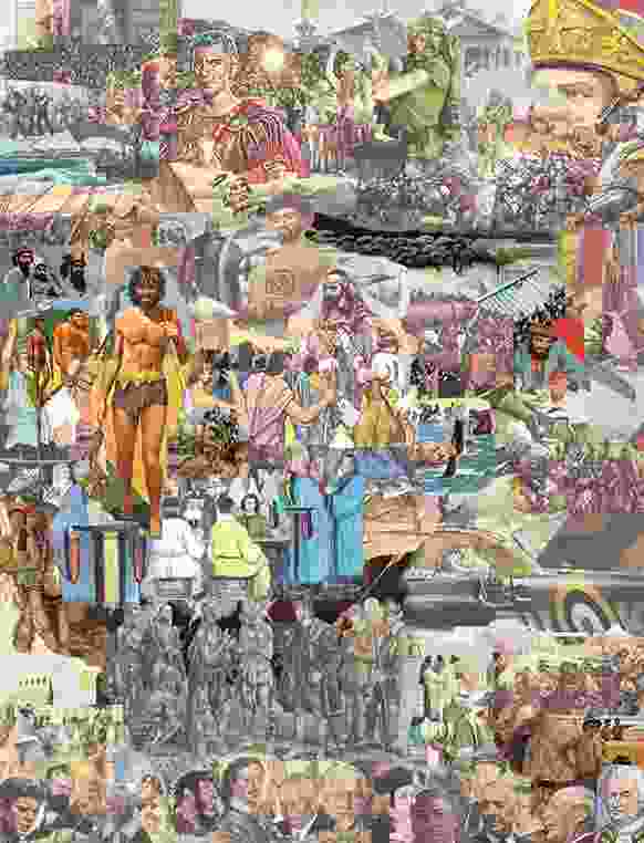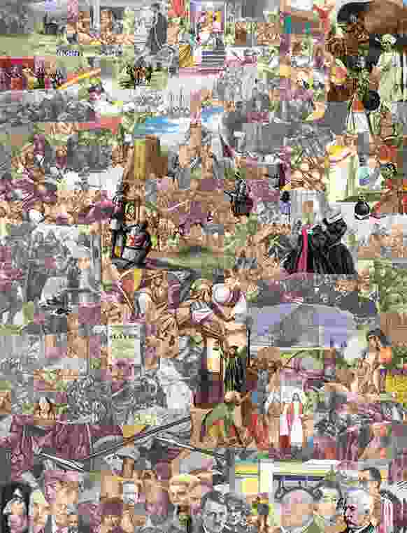 Hassan Khan scanned all 271 painted illustrations in the 1981 edition of The Hamlyn Children's History of the World, which he has owned since he was eight, and used Photoshop to create one meta image.