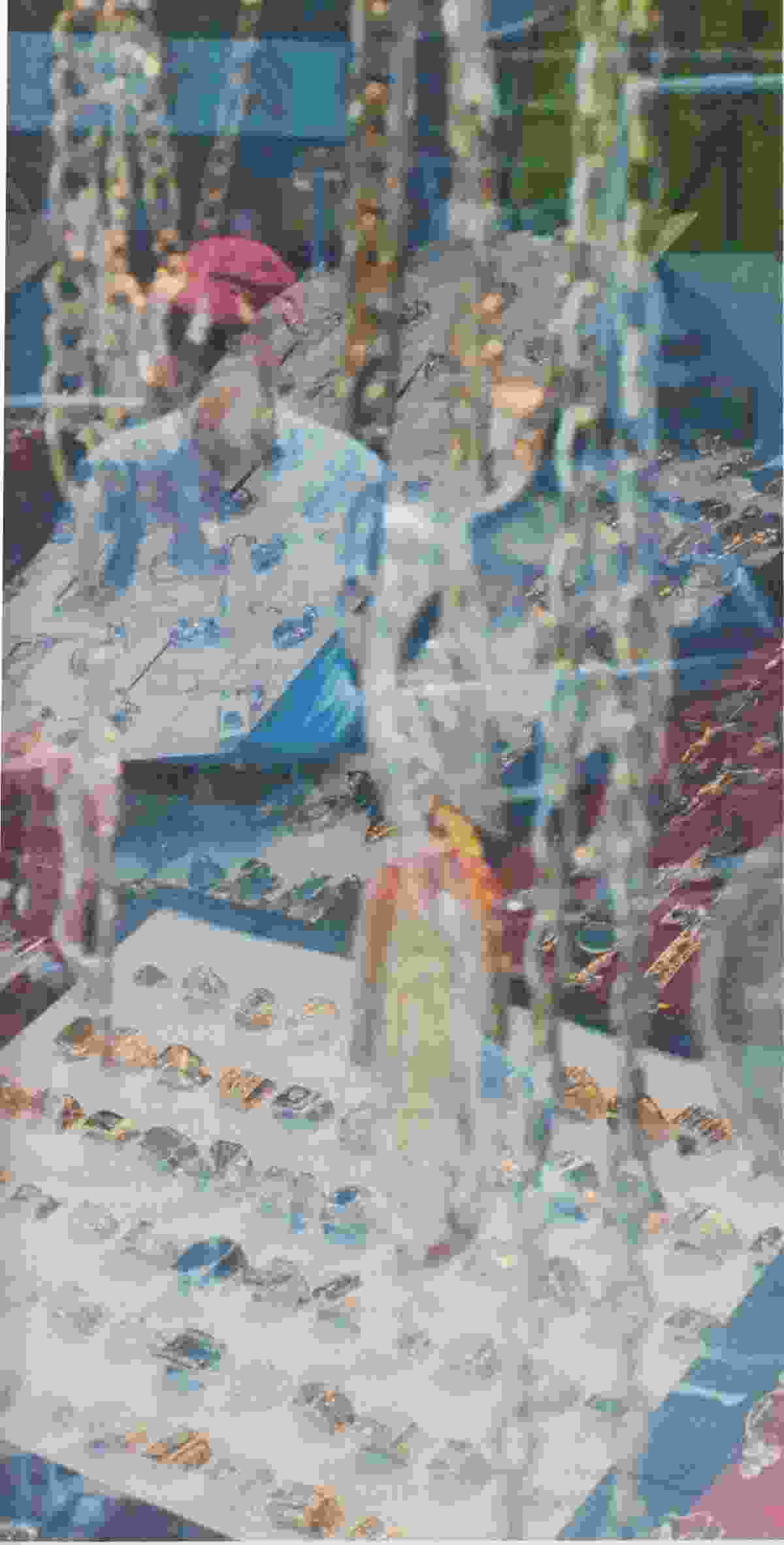 It was raining as hard as in Kurosawa’s Rashomon, and raining hard in my soul, too, as in Valéry’s poem. How was business on Canal Street? There were little men sandwiched between large yellow and red signs that read, “WE BUY GOLD,” walking up and down before the various entrances to the various malls. Two objects caught my eye: a Virgin of Guadalupe in platinum, gold, and diamonds, for $9,700; and a glittery globe clasped by a pair of hands with the legend “WORLD IS MINE,” for $12,900. In the facing window was a pendant depicting a small robber made of solid gold and covered in diamonds. He was modeled on the Pillsbury Doughboy, and he held a bag — of loot, presumably, which he clinched at the neck with one gloved hand. The Virgin of Guadalupe sold better than anything else in the store, I was told. She was doubly attractive — blessing whatever sort of business might bring in enough money to buy one of these homages to her, and protecting it from possible nefarious consequences (shakedown, double-cross, jail, etc.).