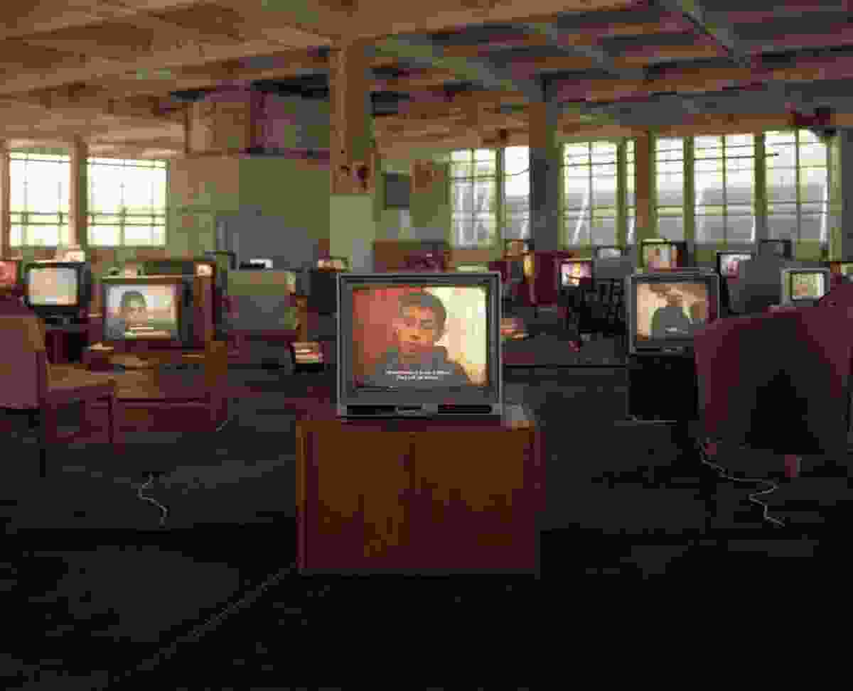 Küba is the name adopted by a particular area of Istanbul that was originally established as a community of safe houses in the 1960s. Over the years it has become an illegal and sprawling mass of dwellings, inhabited by a predominantly Kurdish population. Ataman developed relationships with a large number of residents, recording them speaking about their lives, and forty of their accounts appear in the installation. The work attempts to scrutinize the character of the neighborhood, to enter its psyche in order to understand the nature of a place that is perceived as an aberration. The installation consists of the accounts of these individuals played on old television sets that are positioned directly in front of secondhand sofas, as if a domestic setting. Utilizing the now familiar talkingheads technique, the dialogue is subtitled in English, with the sound of the voices deliberately allowed to coalesce into an indecipherable whole.