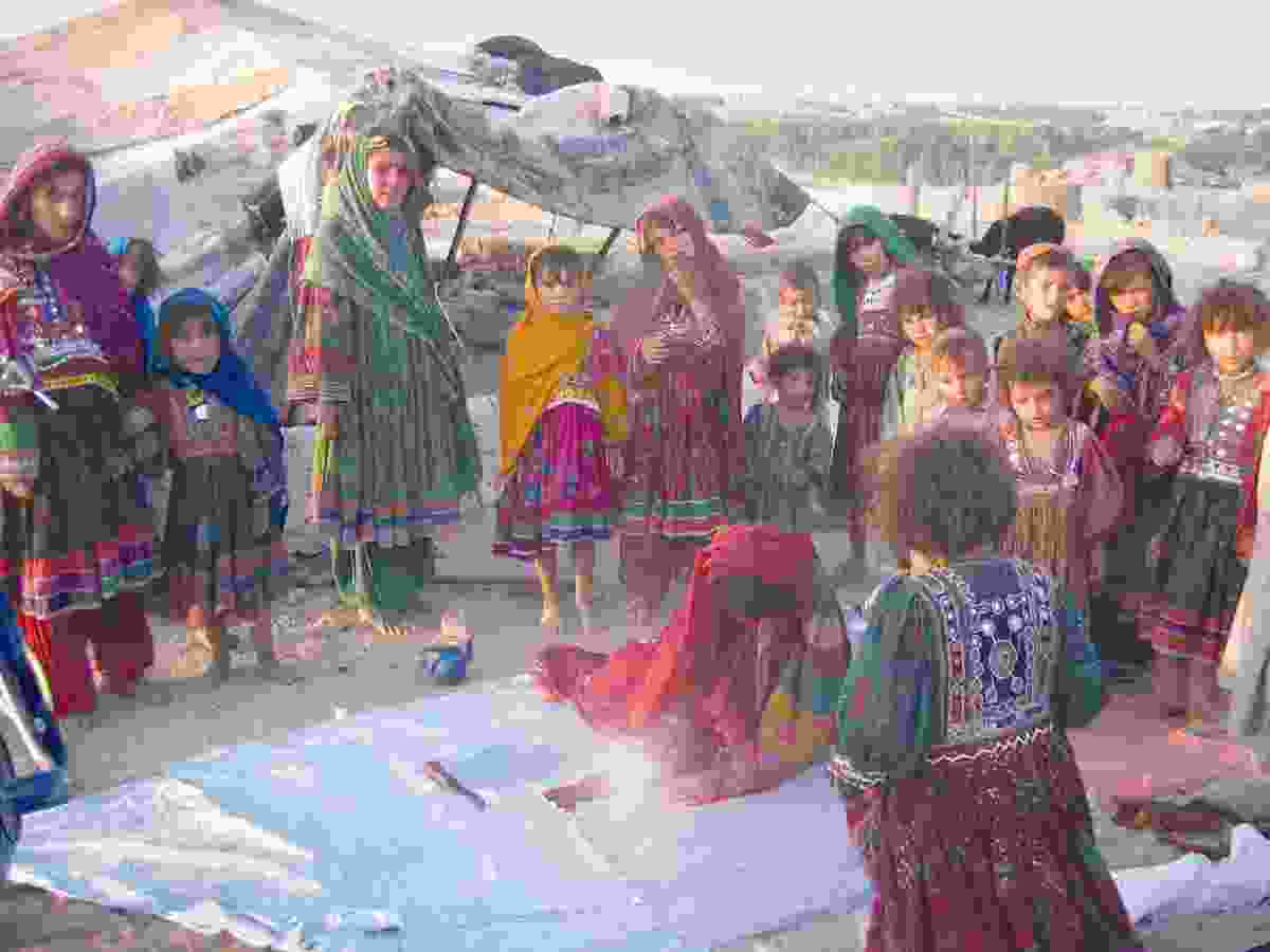 At night, Gul Ba tells the children long stories to make them forget their hunger. With a little coaxing, she began to narrate the love story of Momen Khan and Sharino — children of two kings bequeathed to one other at birth. The sun was dropping fast. The winds were picking up. The mistress of the tent was scraping up old charcoal in a USA cement sack and the small fire was painting another layer of blackness on the teapot as Gul Ba told us her tale.