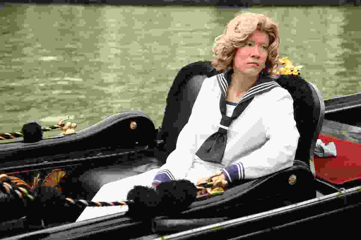 All of that changed with Life and Death in Venice, a three-channel installation in which the aging composer character Aschenbach and the adolescent Tadzi wander through real-life Venice on opposite screens. Wong awkwardly plays both roles and, of course, looks too young for the former and too old for the latter. A moment of organized synchronicity has them exchange glances, and we, along with Wong, are caught between youth and old age. As they stroll, the pair pass through the fifty-third Venice Biennale and the Grand Hotel de Bains, in which the original film was shot (as it happens, shortly after Wong’s production, it was closed down to be converted into a luxury apartment complex). Filmed in these extremely coded locations, the piece exists as a layered archive of place, not to mention a stirring ode to mortality and transience.