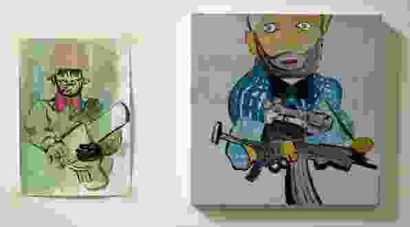 All of these works hover around questions of belonging, identity, and the tendency to give in to conformity at some level as a woman, as an immigrant, or as an Arab in and out of one’s own society. Two works in progress extend these questions — this time through the medium of fiction. The first project, Fais ce que voudras (Do What You Want), concerns a deceased Lebanese painter named Mohammad Haidar. Al Solh’s plans include presenting a number of the late painter’s works, collecting his lost quotations, and, finally, organizing an international retrospective. Why one artist should invest so much time memorializing another is never made clear, just as Haidar’s full biography seems to have glaringly ambiguous elements. He is obsessed, for example, by Otto Dix — a potentially natural affinity for an artist experiencing war firsthand, even if under very different circumstances. But then the artist becomes equally enraptured by Rene Daniels, an artist who suffered a stroke at the height of his powers. In both cases, it’s as though Haidar has a premonition about his own early death. Or is it perhaps a sign that he’s not quite the figure he thinks he is, obsessed with notions of his own position in an artistic canon? The paintings themselves are often direct copies of familiar elements of figures, spaces, or compositions with the addition of traces of Lebanese street elements, or Arabic script indicating another location or origin. Al Solh will also reveal her discovery of two short films Haidar made with his sister.
