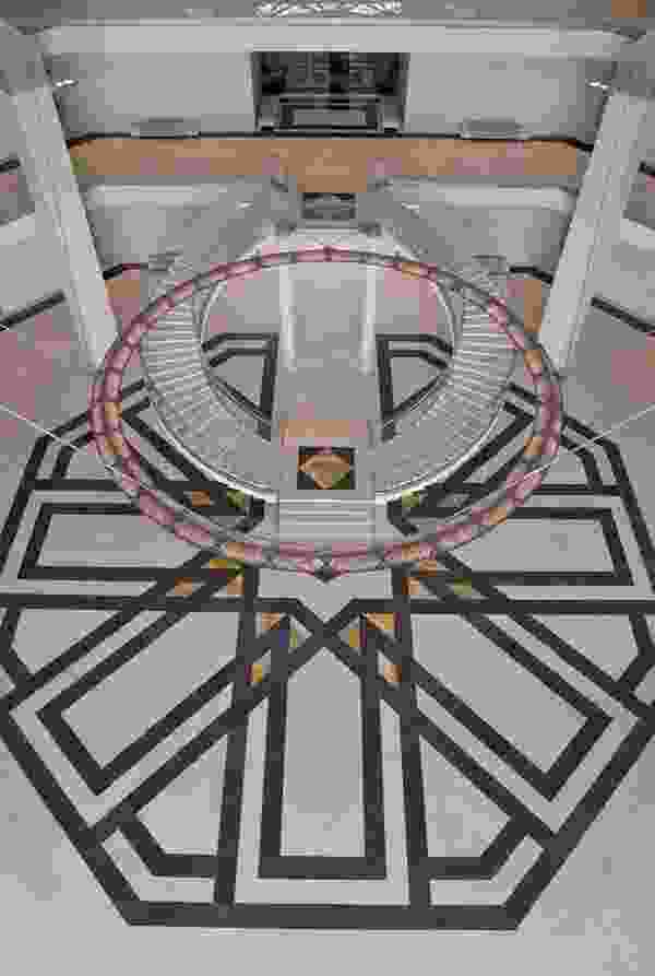 The grand spiral staircase at the centre of the atrium of the Museum of Islamic Art.