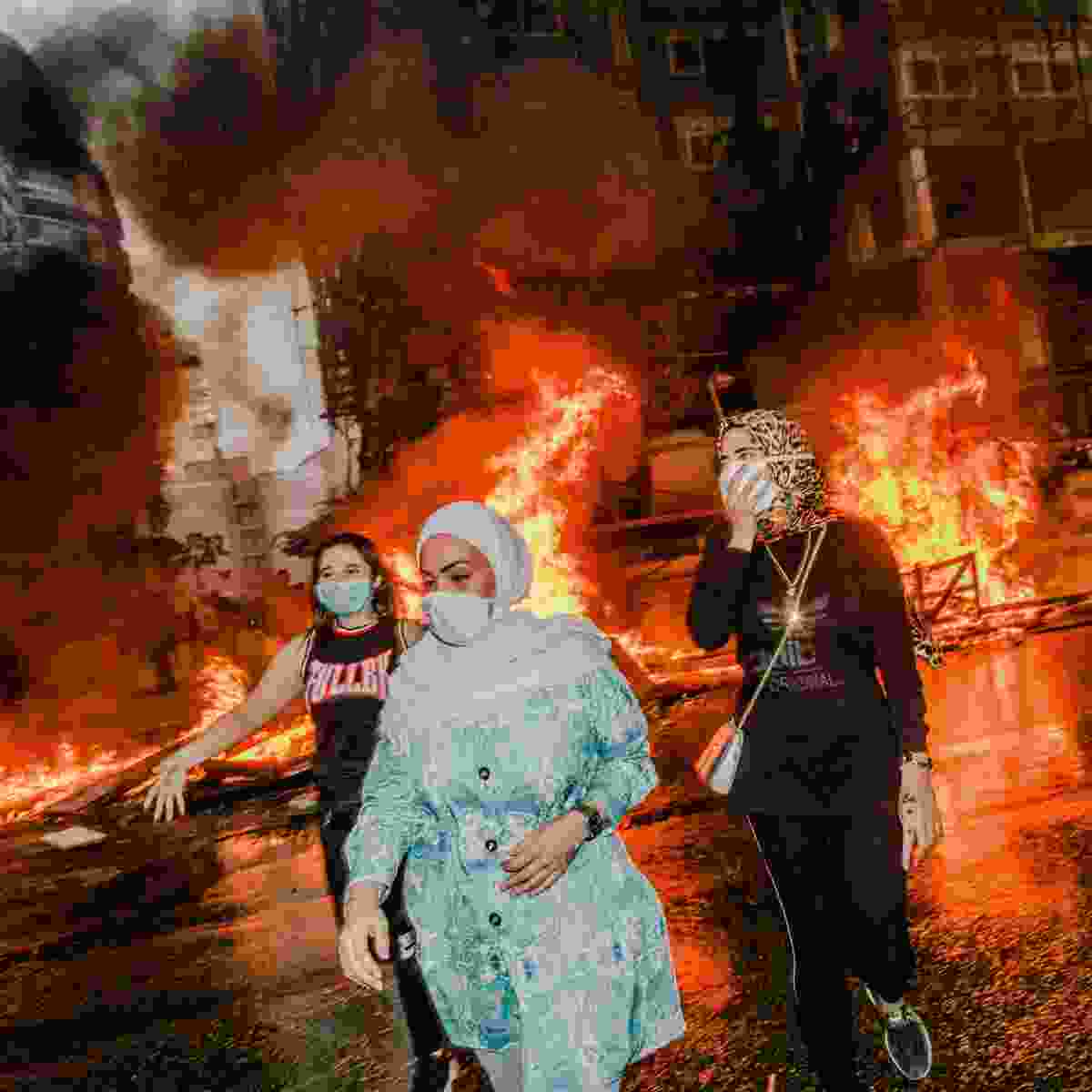Boulos garnered widespread attention in 2020 for a suite of photographs in Time magazine documenting the aftermath of the Beirut port explosion in August of that year. A disaster tied to decades of political corruption and financial malfeasance, the blast unleashed a wave of devastation that killed at least 218 people and injured 7,000 more, displacing some 300,000 Beirutis. The explosion epitomized everything that plagues Lebanon, a diverse and dynamic country ravaged by its resident kleptocrats. Lebanon’s afflictions — including food and water insecurity and scarce electricity, often as little as two hours a day — are borne by all its citizens, but young people are disproportionately affected. (The country’s median age is 28.6, and the youth unemployment rate is just under 25%; the global average is about 16%.) Boulos photographed individuals in the ruins of their homes and workplaces, amid dust and shattered glass — and tear gas, during the street protests that broke out days later. Like hot air over asphalt, Boulos’s images shimmer with frustrated energy. Her subjects have everywhere and nowhere to go, life and possibility pulsing past the edge of the frame yet simultaneously choked off by it.