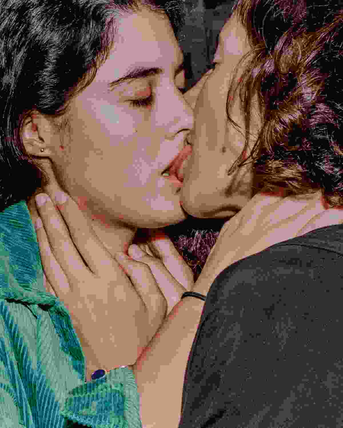 The cover of What’s Ours (Aperture, 2023), Boulos’s first monograph, shows two women kissing, hands clasping each other’s necks, one tongue sluicing the other’s mouth. The image’s near-mirror symmetry is broken by mundane details: the black elastic hair band that circles the wrist of the woman on the left, the birthmark on the other woman’s cheek and the tiny red scab on one knuckle, barely visible as her hand tucks under her lover’s shirt. In one of the short, diaristic passages interspersed among her photographs, Boulos writes, “Some people have said that my images don’t represent us,” and then, a page later, “Lebanon is so layered I still don’t know what ‘us’ means.”