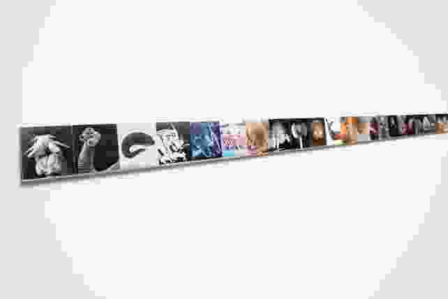Continuum of Cute, across the gallery, was a small shelf supporting a stretch of wallet-size animal snapshots arranged according to their degree of cuteness, ranging from scaly insects to furry round things, with some bizarre, unidentifiable creatures in between. Continuum restaged the “cute” phenomenon — itself a vast continuum, spanning Hello Kitty culture and PETA marketing campaigns, both of which capitalize on the human instinct to cuddle, protect, and own animals — but remained within the bounds of its two-dimensional appeal, never hinting at the serious mechanisms at work beneath the winning facade.