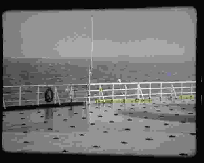 Instead, Nashashibi's cinematically literate shot-making animates the ship and the literal machinery of global commerce — dockyard cranes, shipping containers — in a way that evokes both Dziga Vertov's constructivist celebration of the machine age and Jean-Luc Godard's dystopian reprocessing of Vertov in 1970s films such as British Sounds. One scene, in which two seamen repeatedly open and close an uncooperative door on deck, verges on silent comedy. In another, the setting sun heaves brilliantly into view through an open hatch, creating a textbook vision of the cinematic sublime — a vision so entirely part and parcel of the everyday experience of the crew that it passes entirely without acknowledgement.