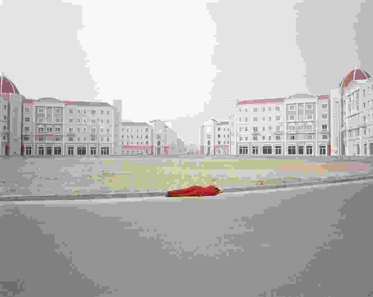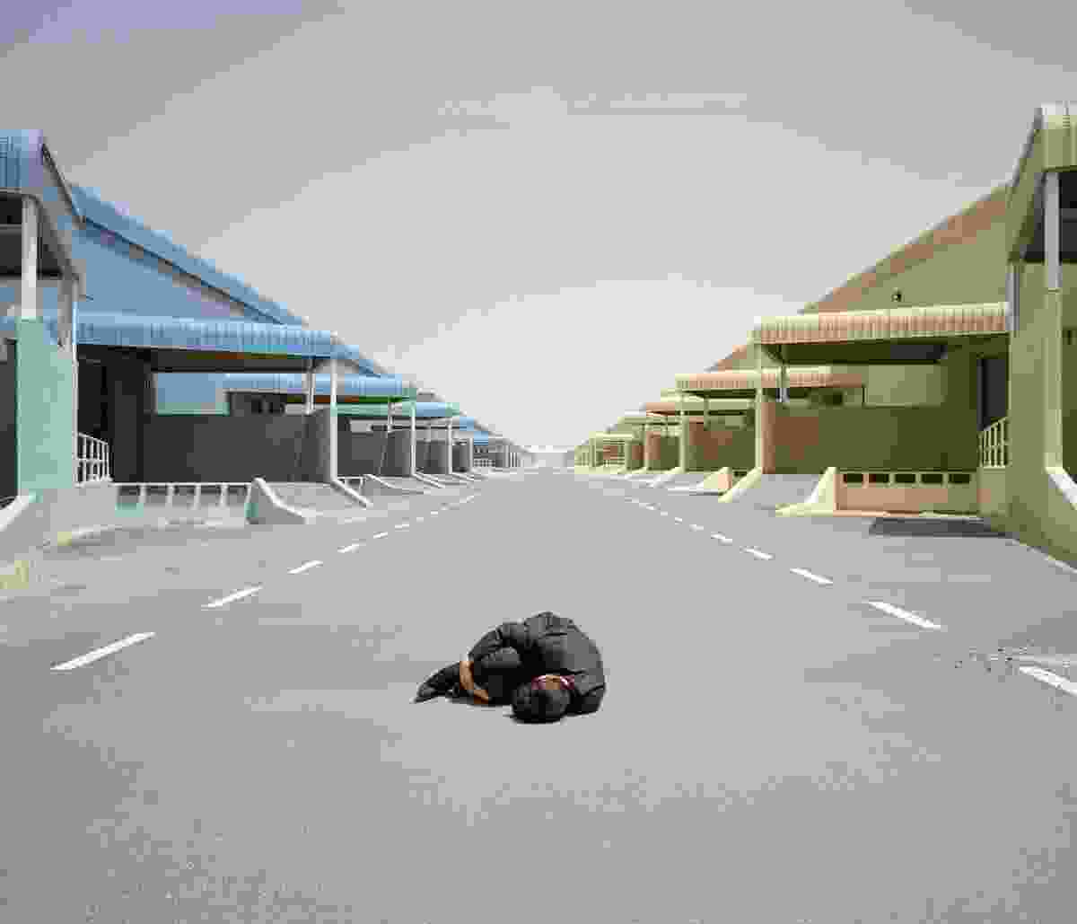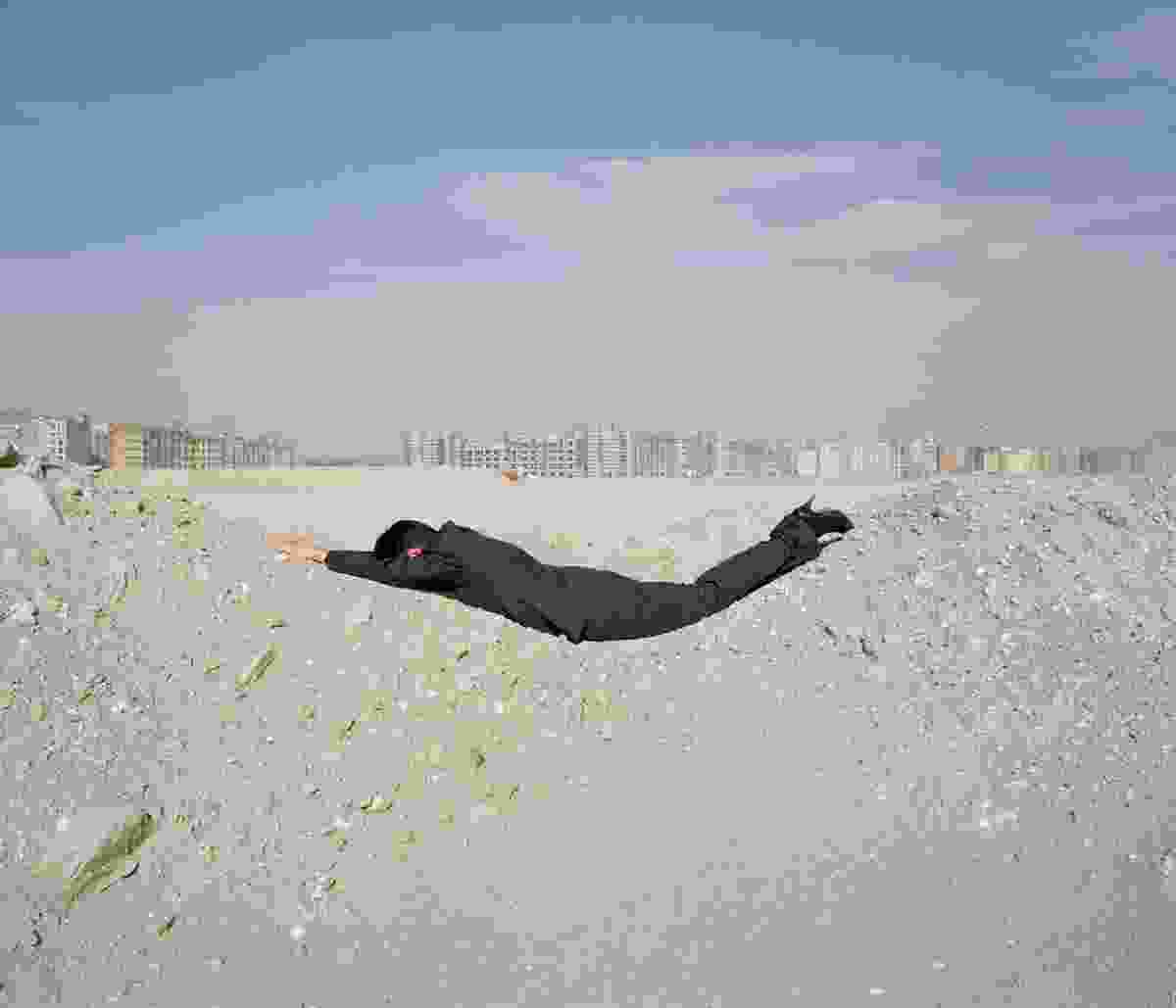 Carey Young’s solo show in New York features documentation of performative actions that she staged in the UAE in late spring. Reworking classic performance works by artists including Mierle Laderman Ukeles, Richard Long, Bruce Nauman, Dennis Oppenheim, Valie Export, and Ulrich Ruckriem, Young positioned herself amid the urban works-in-progress (what she calls “ruins in reverse”) that make up building and industrial sites in Dubai and Sharjah. “My actions aim to relate the partially realized architecture to the idea of a partially realized corporate subject [the ‘becoming corporate’],” she says.