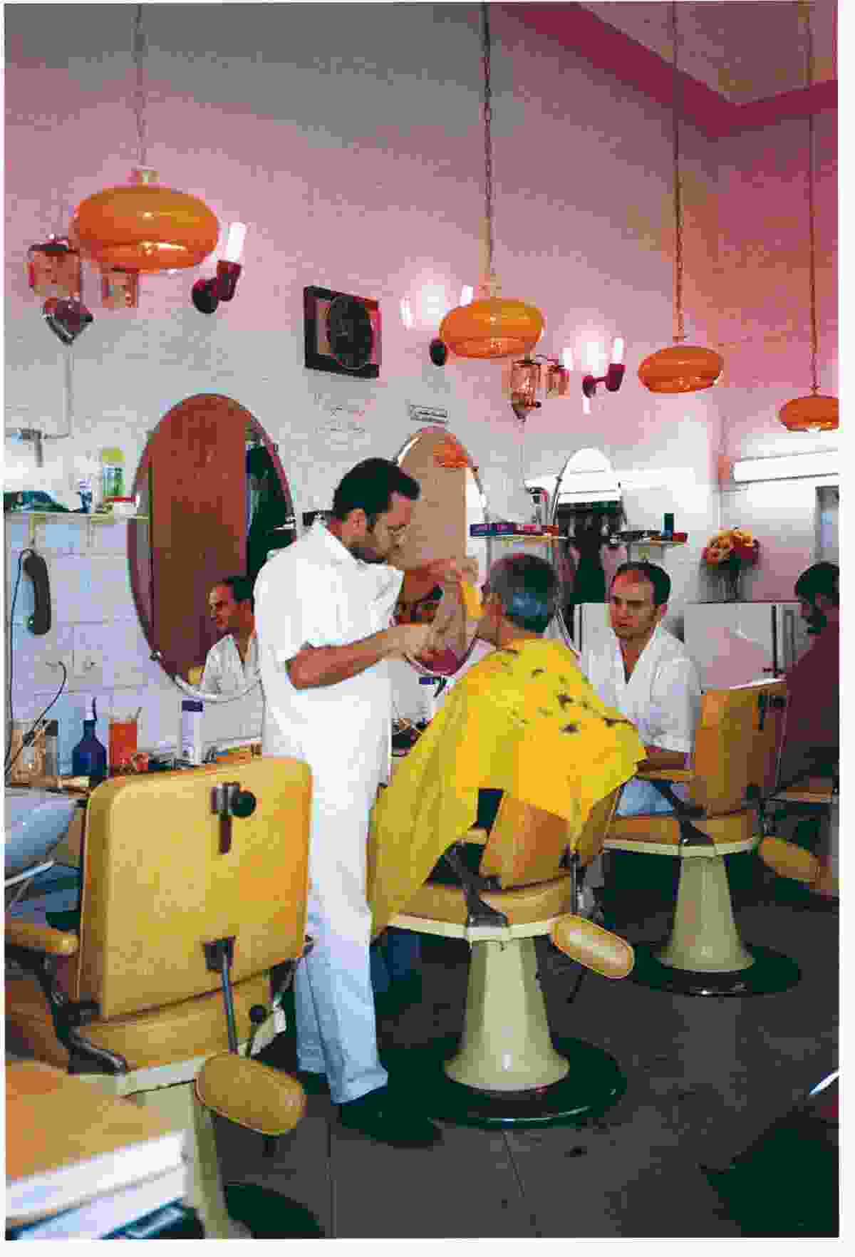 Ahmad, proprietor of Mootah, “Tehran’s best barber,” pioneers these new styles. His salon is tucked away upstairs from a quiet mall near Shariati, a major Tehran boulevard. High maintenance males bask in the warmth of hair dryers, admire their highlights and pat down implants on leather padded swivel chairs. Foreign styles have long influenced Iranian barber techniques, and satellite-beamed international football is today’s strongest influence. Ahmad charted the history of “the West” on Iranian hair for me one day, from Elvis and the Beatles to “the Beckam” and the “del Piero.” My name, Cornelie, it turns out, is the Iranian version of John Travolta’s Grease bonce, a dinosaur still lurking in “the provinces.” While the Duran Duran posht boland (mullet) lingers on it’s the plain, shaved staple of western offices that’s gaining ground.