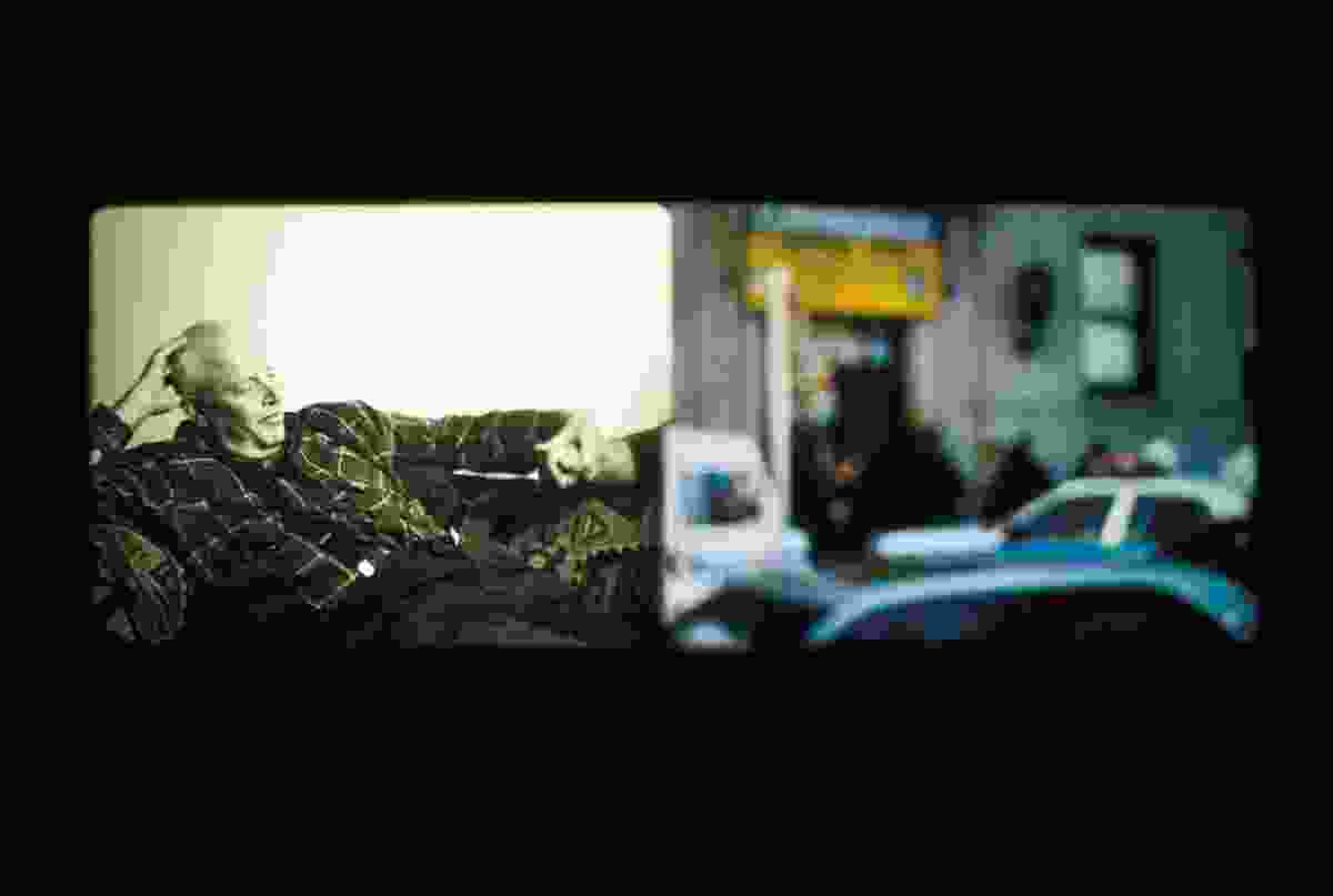 Such leaping was evident in Footnote (2008), one of the shorter works featured in Nashashibi’s solo show at London’s Institute of Contemporary Arts. In laying bare the mechanics of film and of imagination more generally — the jumps, cuts, leaps, and translations — Nashashibi literally staged a simile. She filmed Helke Bayrle (whom she had also used in an earlier work, Bachelor Machines Part 2 (2007) with her husband artist Thomas Bayrle, as part of a reenactment of an Alexander Kluge film) sitting up in bed reading a book. Each time Helke’s gaze dropped down to the page to read a footnote, we cut to the static image of a green ceramic garden frog on the edge of a stone pond. These two images looped continuously, with the only difference between sequences being the blue, red, and green filters that colored the screen. It was a simple manifestation of the random jumps and associations of any thought process, and formally toyed with the staccato visual possibilities of the film reel.