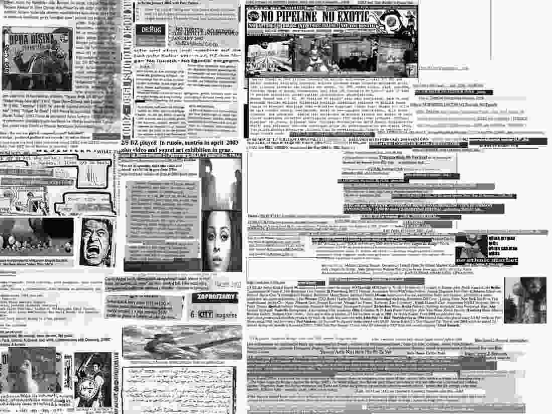 As an antidote to that system, Köksal set up his own record label, Gozel, a one-man multimedia production house that puts out CDs and DVDs, zines, stickers, posters, tapes, and vinyl. But his aesthetic, and all it represents, is perhaps best embodied by the 2/5BZ website, a massive tangle of information that looks like a primitive MySpace page plastered over a Bulletin Board System laced with punk flyers. There is a word for it, a gelatinous byproduct of industrial production that has come to signify the lowest common denominator of the technologized global economy: spam. Köksal’s site hosts a nearly indecipherable mess of images, Technicolor columns of text, film clips, posters, articles, stray phrases (Orientalcore, DECONSTRUCTING TURKISH FILMS & REMAKE, Belly Dance Electro Punk), and links to his seemingly endless stream of projects — a thousand bits of information bleeding in colloidal suspension.