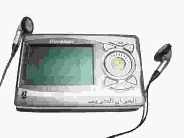 The PenMan digital Qur’an is designed for easy access to the holy book, a suave example of easy, quick-fix didactics. It's like the Basic Language Skills CDs you pop in your car stereo (by the time you reach the gas station you can order an oil change in Urdu), but this device goes one step further. Equipped with headphones and a small monitor, the Sonic Quar’an™ spells out the text you wish to consult in English or Arabic. Thanks to the headphones, you can listen to the passage read aloud, and soon impress your friends with improved recital skills and smooth Qur’anic pronunciation.