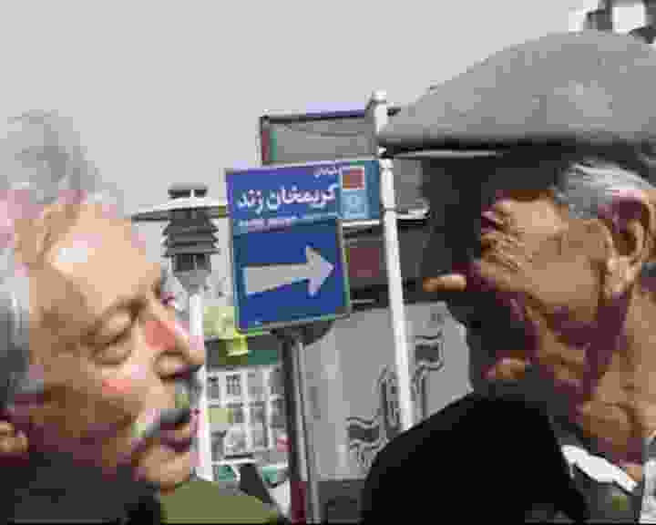 The film’s exploration of different spaces in the city culminates in a scene in Nobonyad Square, the home of the Sepah Pasdaran (Revolutionary Guards). As Amir and Najmy get closer to the Square, the standard larger-than-life posters appear and the tall buildings become more imposing. Displaced, the two old men keep moving through these spaces. They long for something more sublime — the city of Abadan.