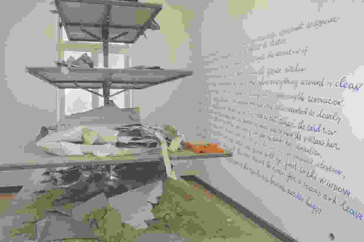 Nedko Solakov’s piece in the Deniz Palas apartment venue worked well with the curators’ desire to look away from historical monuments. In small handwritten notes, Solakov told the story of an absent painting that supposedly had hung on various spots, while all that was left were nail holes, peeling wallpaper and chipped windows. In a humorous way, Solakov’s site-specific piece drew attention to traces of lives once lived in this flat (conveniently used for the exhibition before renovation). Other pieces that related literally to the local setting, like Halil Altindere’s slapstick video of surreal episodes involving a robber, a bridal party and an orchestra along the pedestrian area Istiklal Caddesi, were less convincing.