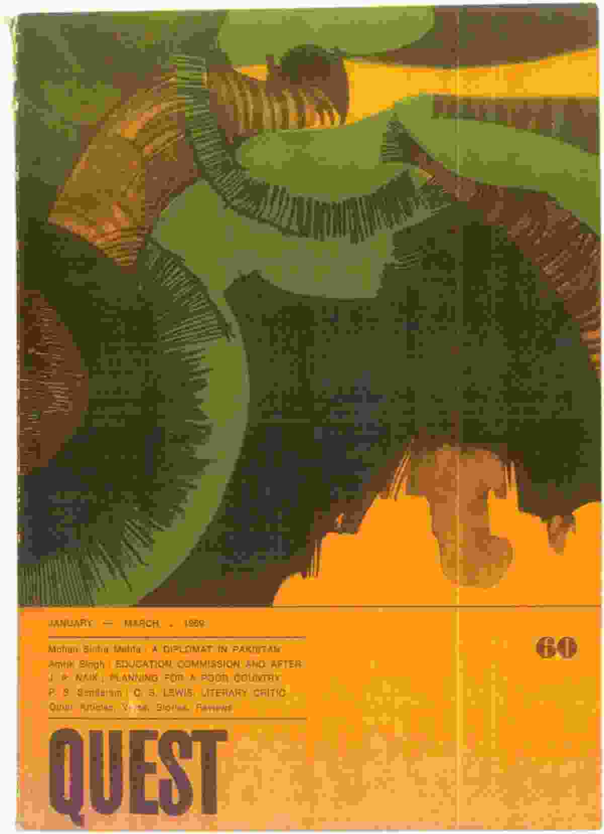 Michael Vazquez: So as I understand it, the story of Quest begins with the General Secretary of the Congress for Cultural Freedom wandering the cities and towns of India, looking for an editor. What, precisely, was he there for? What was the point of Quest?