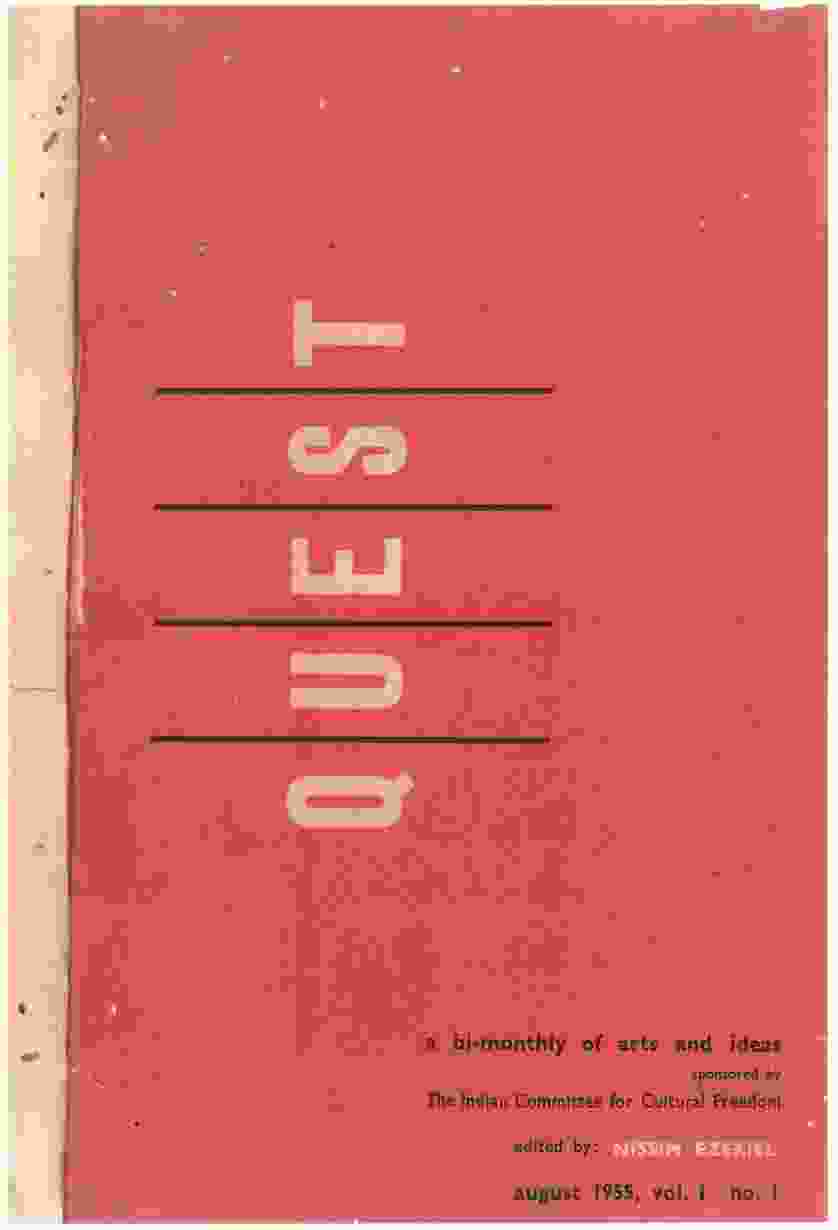 Achal Prabhala: I think it depends. For the CCF, it seems fairly obvious. By the 1950s Nehru was clearly socialist. And the communists had been strong in India from long before independence. And this was not long after Mao’s triumph in China. So from the CCF point of view, there was a sense that if the right people could be found, India was a place where something needed to be done. But I think from the Indian point of view, there would have been a real desire on the part of people like Nissim Ezekiel, the founding editor, to have a modern Western-style publication that would be a home for literary writing. I imagine that he saw it, frankly, as a chance to start something that looked like Encounter. The people involved with Quest were the sort of people whose main experience with literature would have been outside the country. So I imagine that it would have been an attractive proposition to get money to start up something that brought that side of the world here.