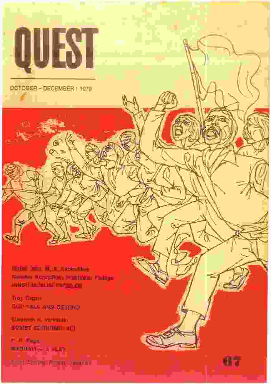 In his brief introduction to The Best of Quest, a 660-page brick of a book collecting scores of essays, poems, and stories from what was once India’s leading English-language literary journal, Achal Prabhala relates the chance encounter that led to the anthology’s conception. Like many such encounters, it happened in bed. Sleepless and bored, he turned to a pile of magazines his parents had given him and plucked out an issue at random. It was the April–June 1970 Quest, and there was an essay inside like a message in a bottle… a bottle stuffed with an oily rag, set on fire, and sent spinning nearly four decades into the future. At his head.