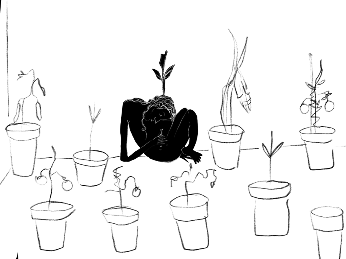 The days were getting longer, I watched the aloe vera plant grow so quickly that I sometimes wondered if it was thickening before my eyes or if my eyes were going into REM. The stalks were thick and juicy, I would snap them, carefully peel off the skin, and rub the wet flesh on my face. Sometimes I would grow impatient and just squeeze them between my fingers, my fists, until my hands were covered in the clear slime, which I would rub on my skin and hair. It sounds dirty but everything in there was mine. It was natural, I had chosen it.