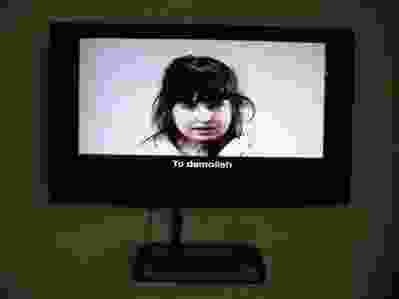 Most works in ‘Green Zone / Red Zone’ didn’t deal directly with questions of territoriality and control as described in the show’s mandate, but rather investigated loss — of discourse, of meaning, of language — within a context of protracted violence and strife. In that sense, the exhibition’s title was misleading. Adel Abidin’s video installation Common Vocabularies (2006), for example, was a case in point. A looped onechannel installation showed us a young Arabic-speaking girl struggling to pronounce a dictionary of war: “massacre,” “suicidal,” “ration share,” “elections,” “terrorist,” “fucking bad luck,” “improvised explosive device,” “hegemony,” “occupation,” “reconstruction.” The repetition of those seemingly random words, by a girl too young to know their meaning but old enough to be consciously exposed to them on a daily basis, became a rehearsal in depleted semantics. Accompanying the installation were stacks of takeaway cards with the words written in Arabic script, their phonetic Roman transcription, and their English translation. The cards’ uniformity and disposability signaled the incapacity of language to express the traumas of war but simultaneously reminded us of the short-lived and expendable news value of those words.