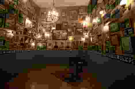 Hala Elkoussy’s room-size installation of some three hundred images and objects, for example, entitled On red nails, palm trees and other icons, offered a sentient, seductive take on the archive. The artist collected old photographs and personal effects and placed them in a gorgeous but intentionally dilapidated setting, replete with retro furniture, plush curtains, and crystal lighting fixtures. The idea was to create a record of the things that downtown denizens cherish — images of young soldiers, film stars, sexy singers, postcards, loved ones, children’s playing cards — but by merely presenting rather deeply exploring the material, the piece risked fetishizing the vintage (to borrow a phrase that two of Elkoussy’s fellow Cairene artists, Hassan Khan and Sherif El-Azma, are fond of using). Elkoussy’s cache of stuff had potential, but her treatment of it — or her pathway through it to a more meaningful point of her own — needed further development.