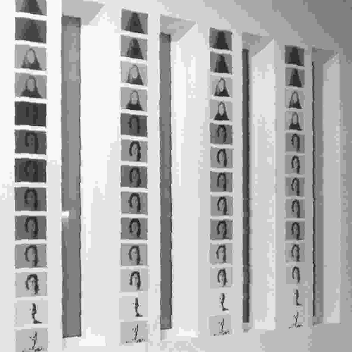 Fatima al-Qadiri’s Neon-Orientalism, a series of photographic portraits, explored the idea of the veiled woman’s “co-habitation with extinction” — a hackneyed subject in Middle Eastern contemporary art generally, but one that still retains taboo status in Kuwait and the socio-cultural scene in the Gulf generally. Sayyarat wa Mikyaj (Cars and Make Up), an array of black prints on colored cardboard traced the “evolution” of the female figure — the artist’s own face — from the basic skull, through a range of hairstyles and make-up, to the bushiah or niqab,an absolute veil that renders the face either visually non-existent, or virtually seductive,depending on your point of view.