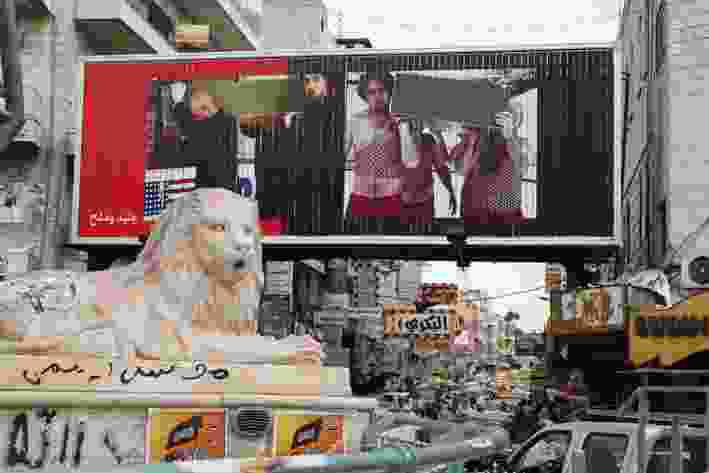 And the jury awarded two second prizes — to Shadi Habib Allah and Mohammed Fadel. Shadi Habib Allah deals with local subjects in his simple, animated videos. An Ongoing Tale was projected on to the ground, encouraging the viewers to look down — as though into a well — and, ultimately, at themselves. Mohammed Fadel, who unfashionably describes himself as a “decorator” and was one of few painters included in the show, presented a series of mediumand large-sized canvases in oil in the biggest and most modern shopping center in Ramallah. Their naïve style belied Fadel’s myriad influences. Wafa Hourani, who received third prize, presented a multimedia installation, taking the Qalandia checkpoint as his point of reference and mapping the area around it with video, referencing the style traditionally used in historical three-dimensional models of castles. Hourani’s video, projected onto a curtain, featured the checkpoint area in minute detail, encompassing the stacked houses, narrow alleys, satellite towers hovering above the roofs of the refugee camp, the sidewalks, the gardens, and the Wall. Viewers were encouraged to walk through the curtain, to take in a performance based on the lions of Ramallah’s Manara Square. A huge endeavor, and highly popular with local audiences, the work attempted to say too much and was ultimately marred by its clutter.